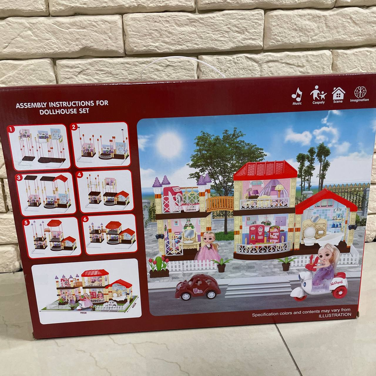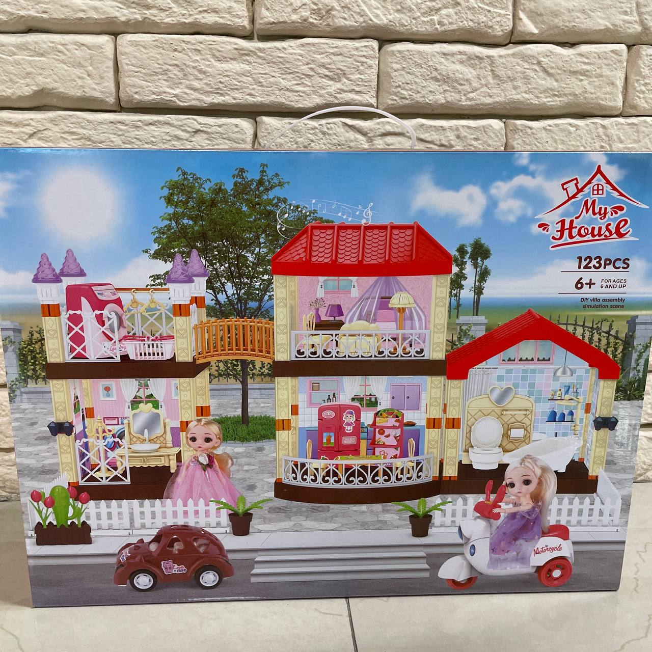 Ляльковий будинок 123 елементи, мелодія, наліпки, 2 ляльки, мопед, машинка, меблі 326 D 137