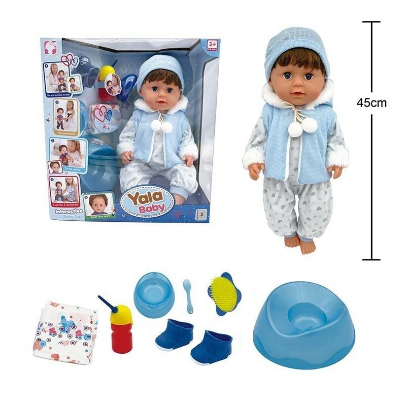 Лялька - пупс: п'є з пляшечки, ходить на горщик, заплющує очі, плаче сльозами, висота 45 см, BLB 002 F
