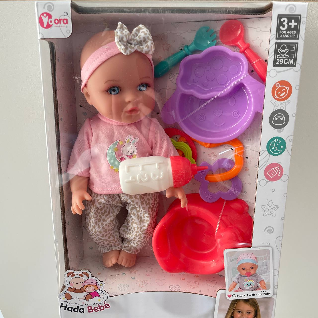 - додаткові аксесуари для гри: соска, брязкальце, пляшечка, тарілочка, ложка, виделка, рушничок, каченя, горщик.