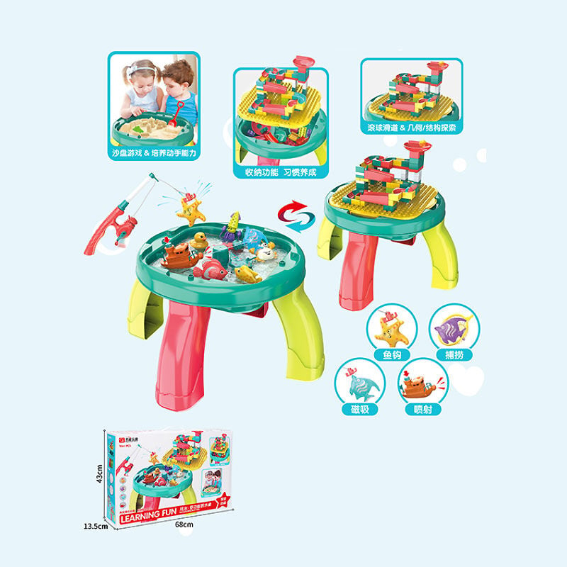 - 3 в 1: столик для конструктора, магнітна риболовля, пісочниця;