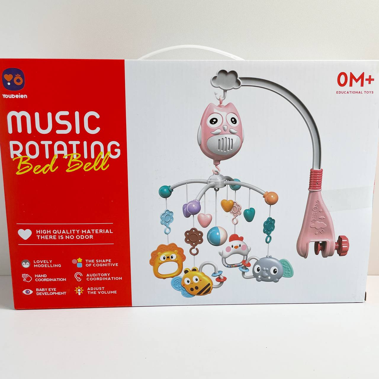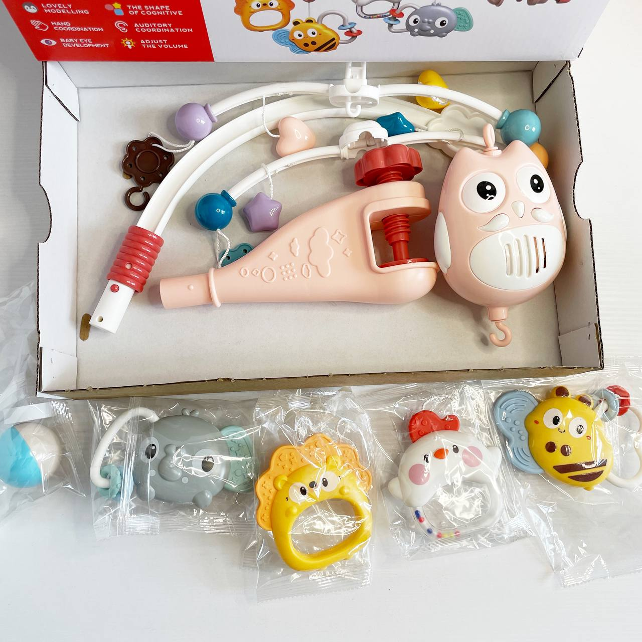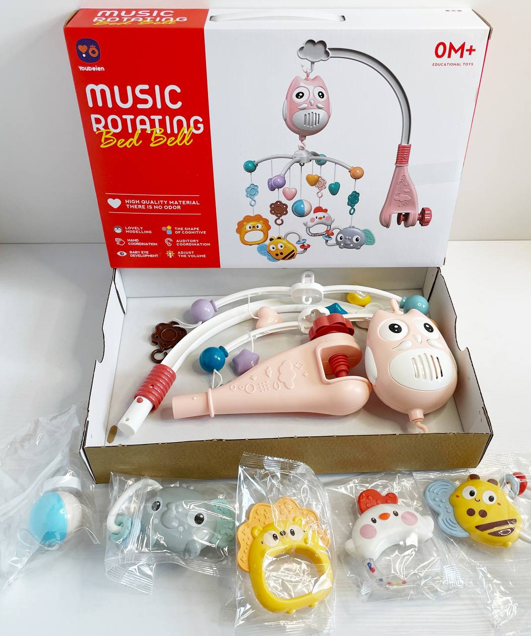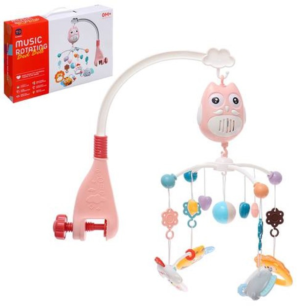 Дитячий мобіль карусель на кроватку з підвісками Рожевий (брязкальце, прорізувачі.) RT668-13