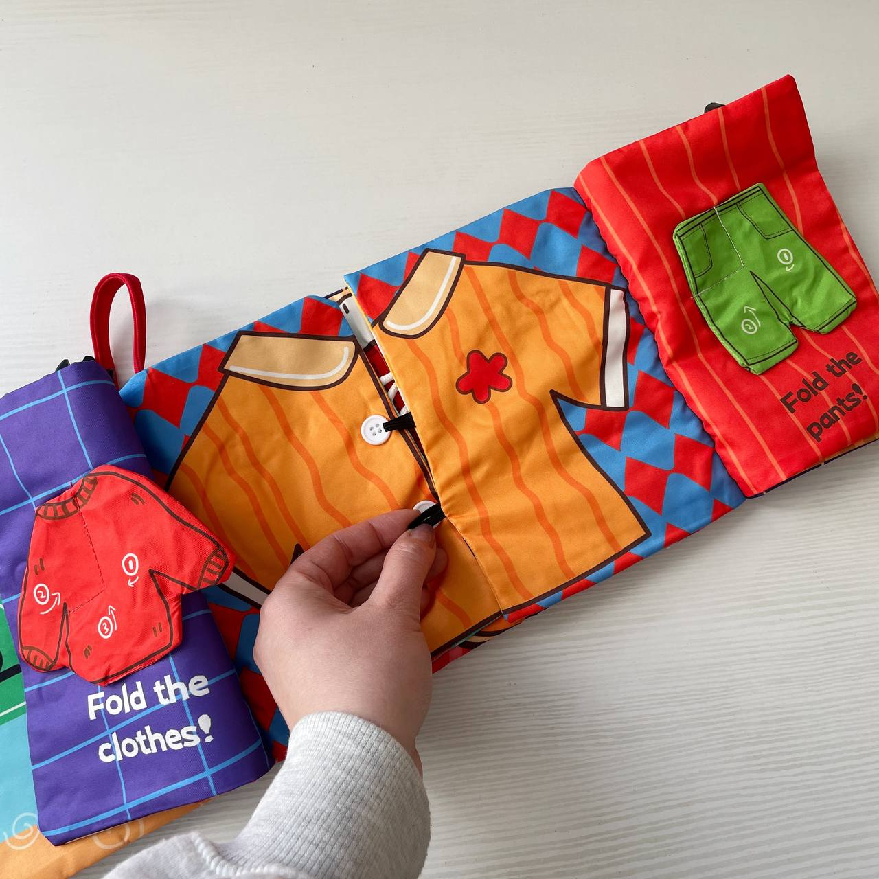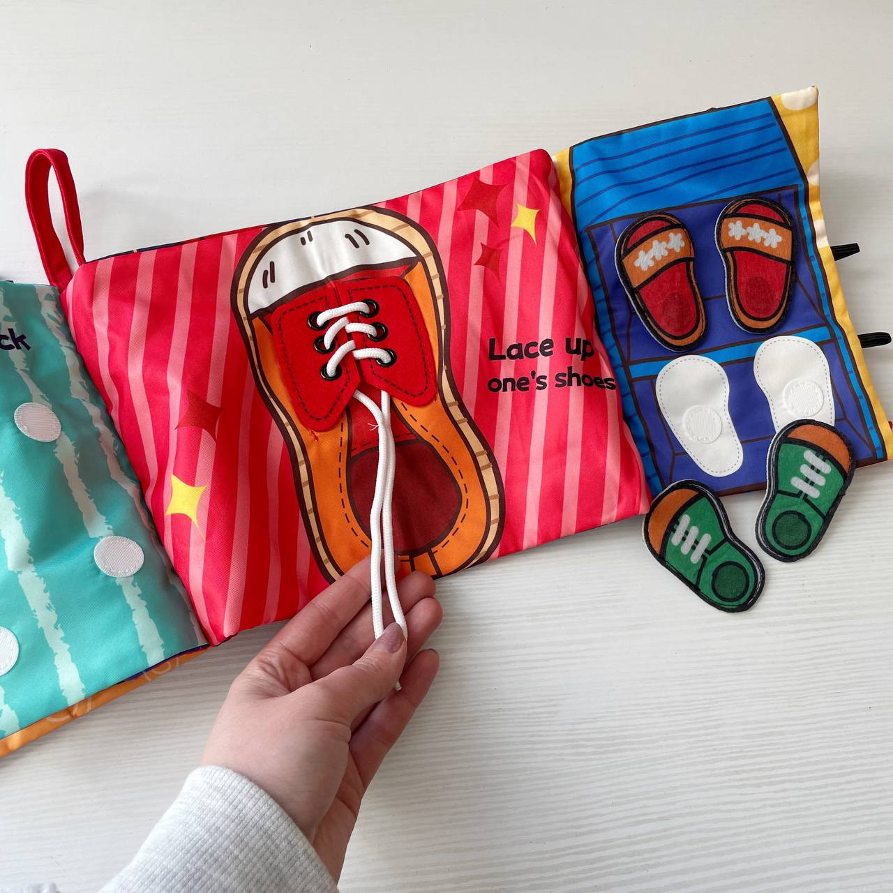 Книга сприяє покращенню координації, розвитку логічного мислення, чутливості до сенсорних відчуттів та підготовці до самостійного одягання.
