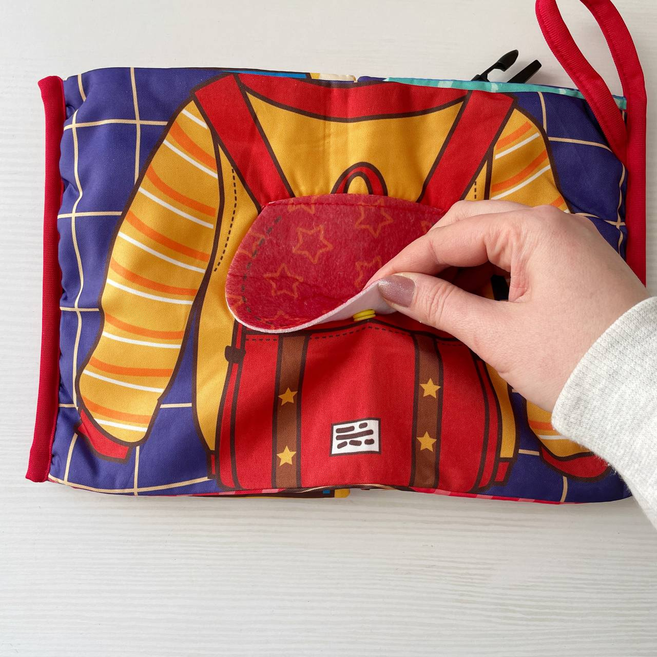 • Оригінальна обкладинка у вигляді куртки: для відкриття книги малюку потрібно розстібнути блискавку, що стимулює розвиток самостійності.