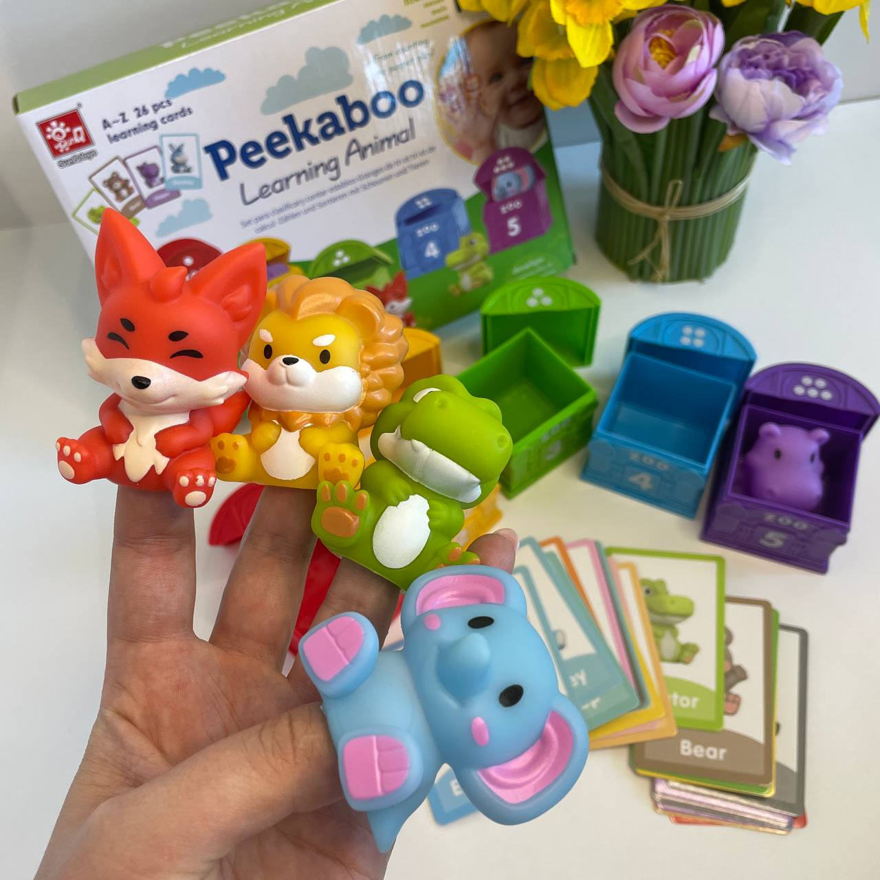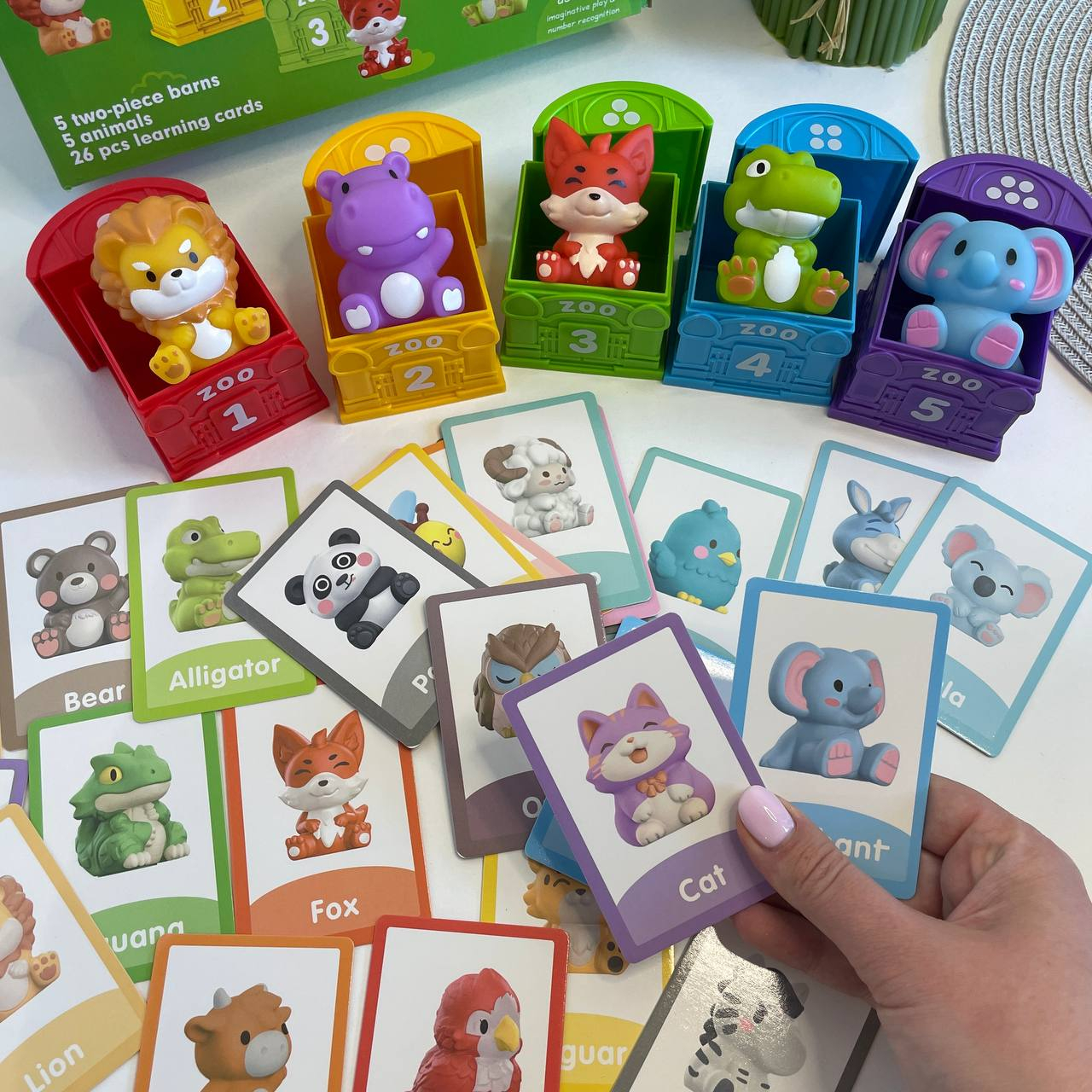 - у комплект включено двосторонні картки із літерами англійської абетки та назвами тварин, які починаються на ці літери.