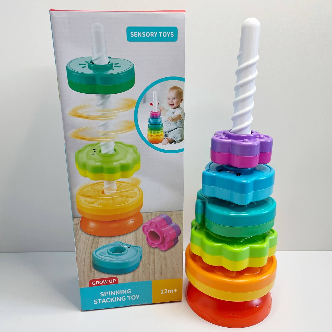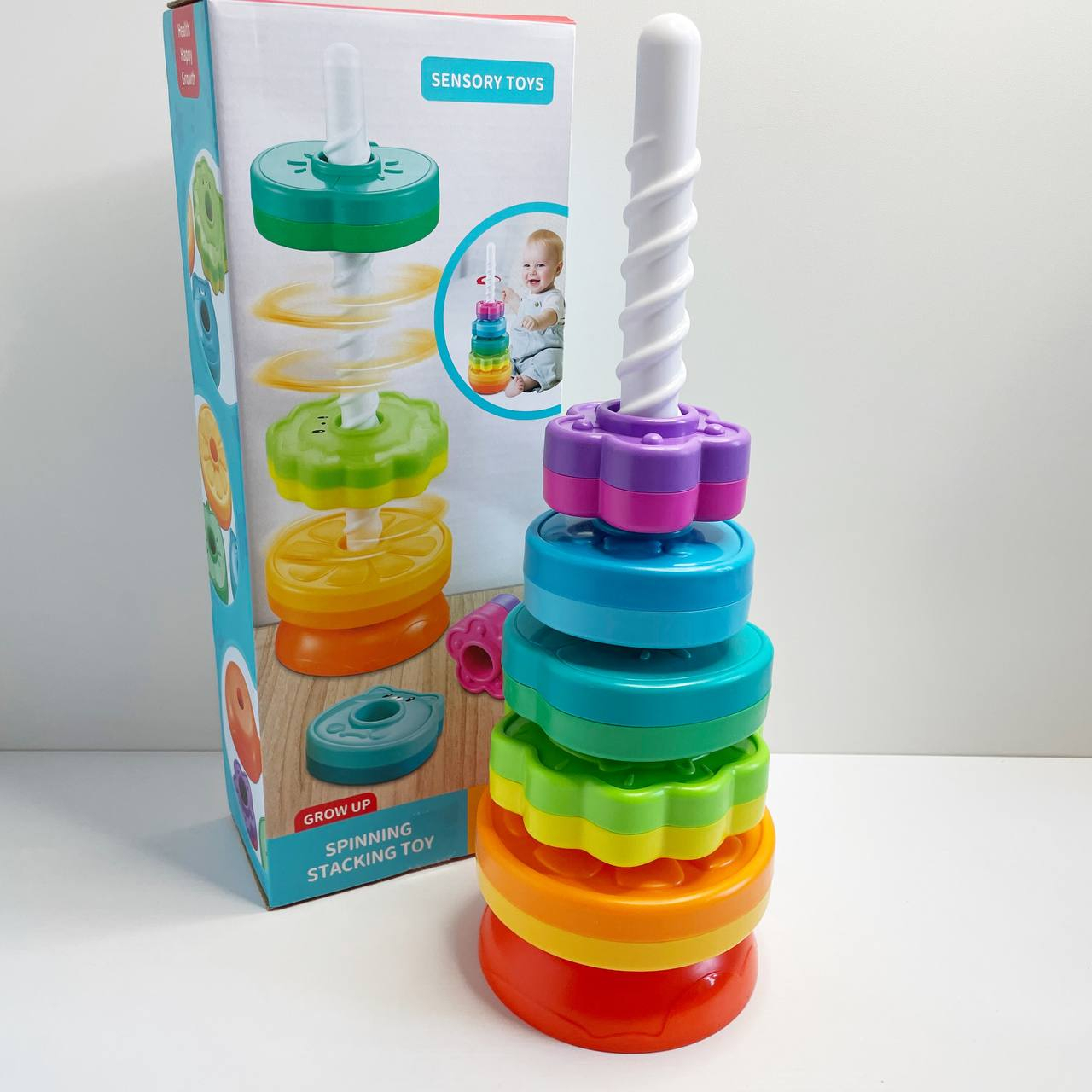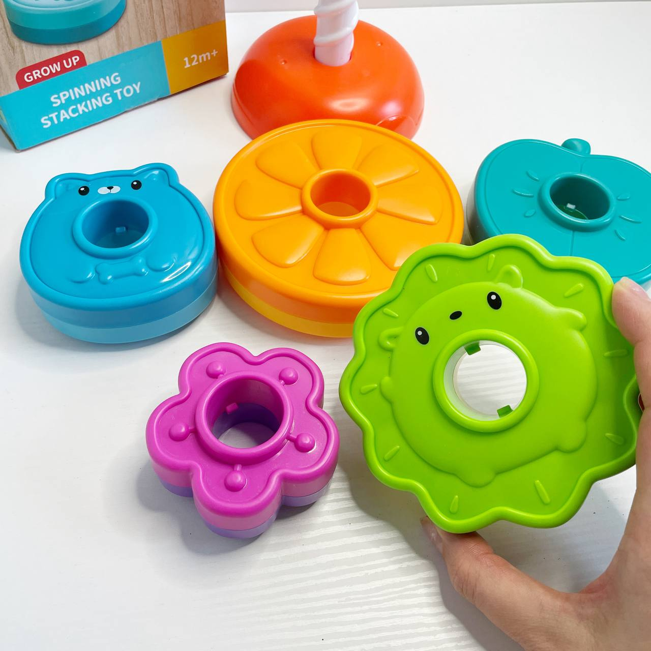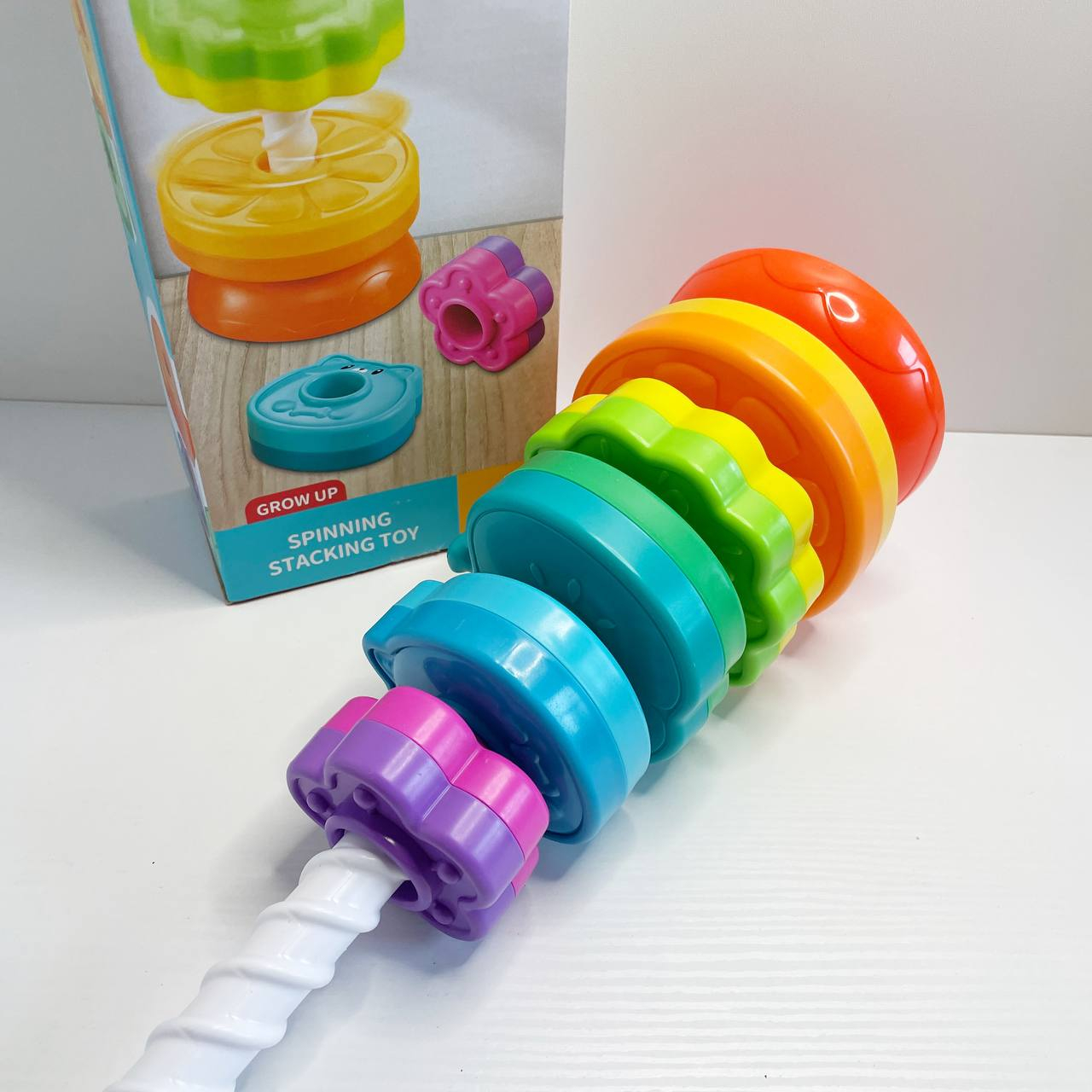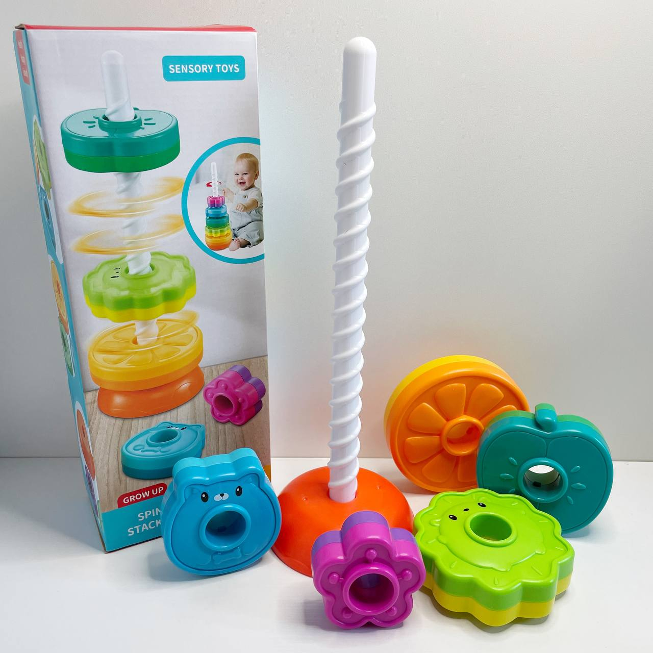 Дитяча гвинтова спіральна пірамідка з кільцями (текстурні,фрукти,тварини,квітка) 36403