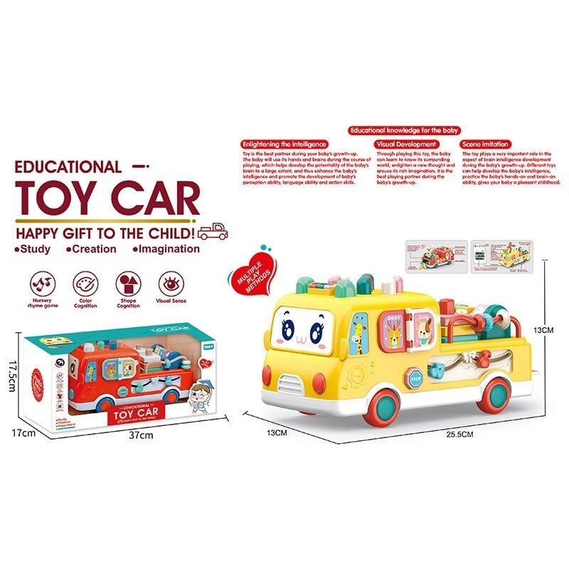 Розвивальний автобус: музика, підсвічування, гра з молоточком, намистини, рухомі шестерні, тріскачка, 2 пірамідки