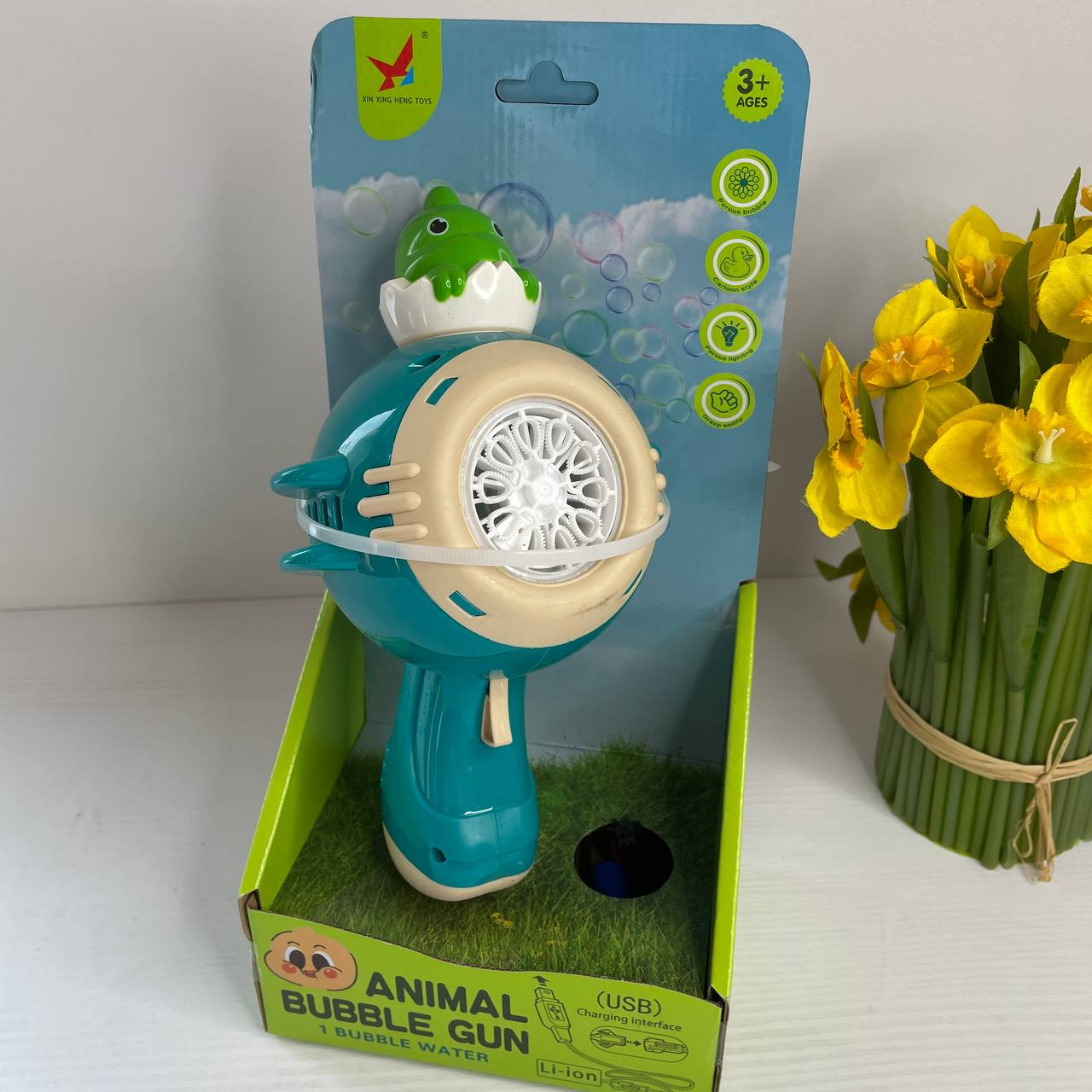 Пістолет з мильними бульбашками з підсвічуванням, акумулятор, пляшечка з мильним розчином XH 136
