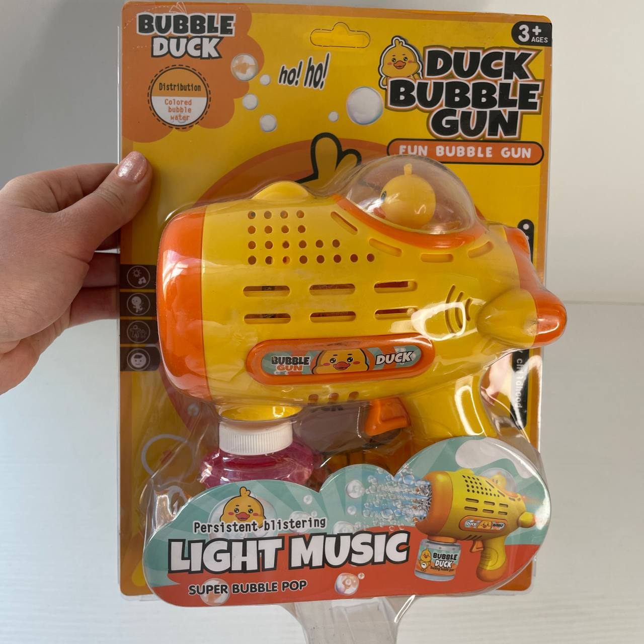 Пістолет з мильними бульбашками YD 653 A на батарейках, музика, підсвітка, мильний розчин, на листі