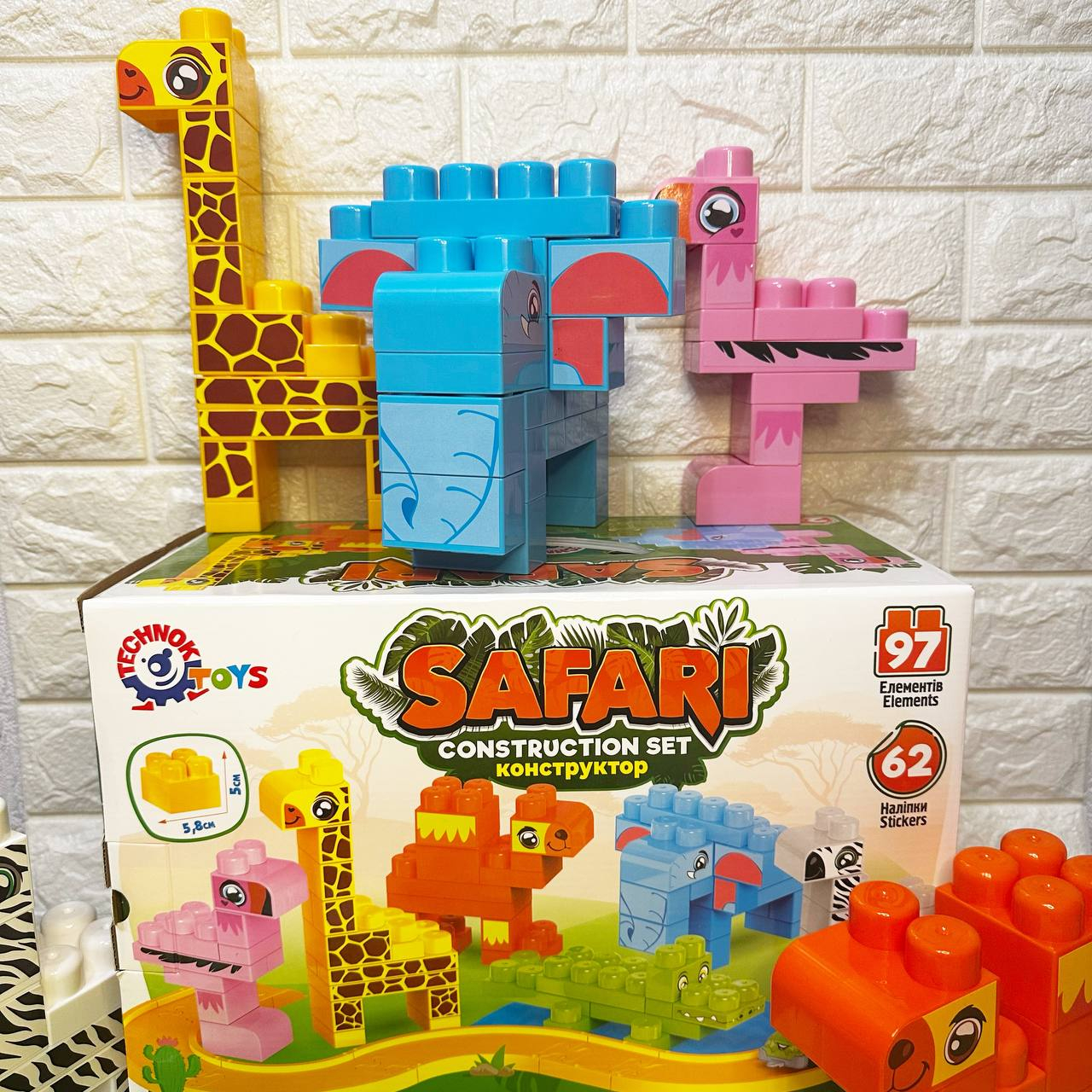 "Конструктор Сафарі" - це захопливий набір, який дає можливість дитині побудувати свій власний живий світ Африканського сафарі. Набір складається з 97 елементів та 62 наліпок, що дозволяє дитині збудувати чудовий світ сафарі з незабутніми тваринами та цікавими пригодами.