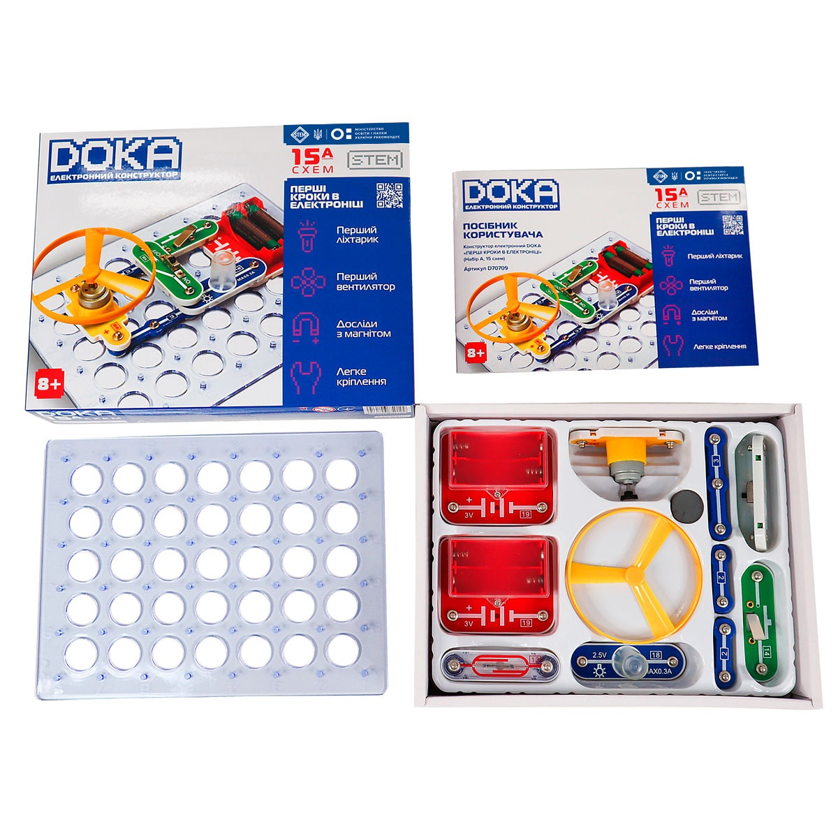 Конструктор електронний DOKA "ПЕРШІ КРОКИ В ЕЛЕКТРОНІЦІ" (Набір А, 15 схем)