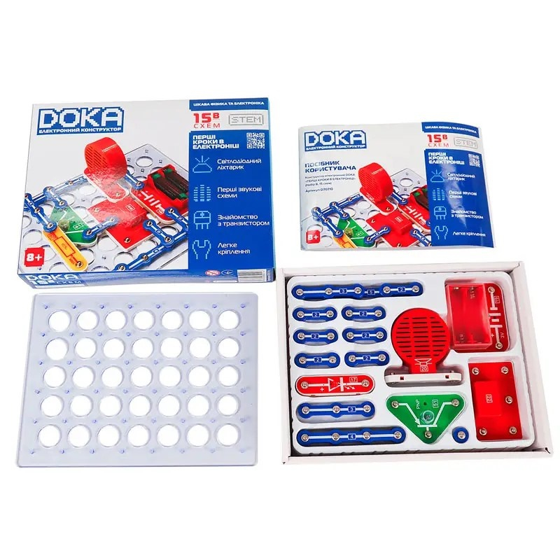 Конструктор електронний DOKA "ПЕРШІ КРОКИ В ЕЛЕКТРОНІЦІ" (Набір В, 15 схем)