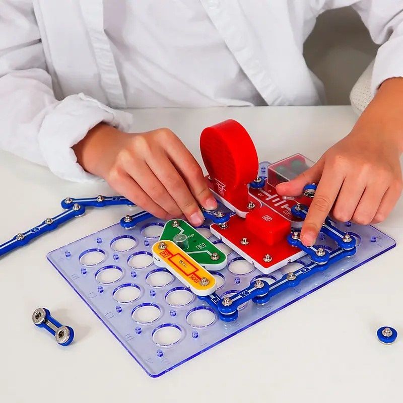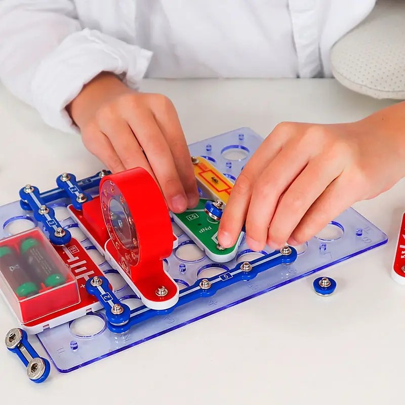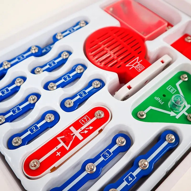 Конструктор пропонує 15 різних схем, для збору яких дитина зможе скористатися провідниками, елементами живлення, вимикачами, лампами і електромоторами, збираючи їх і відкриваючи для себе багато нового і цікавого, при цьому не використовуючи небезпечний метод паяння.