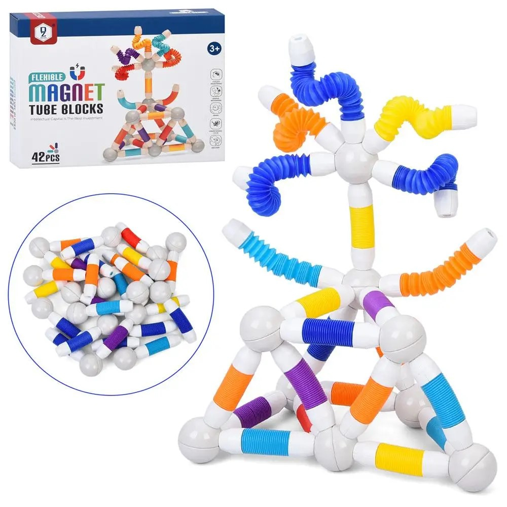 Конструктор магнітний, трубчатий, Поп Туб/Pop tube, кульки, 42деталі, HD185A