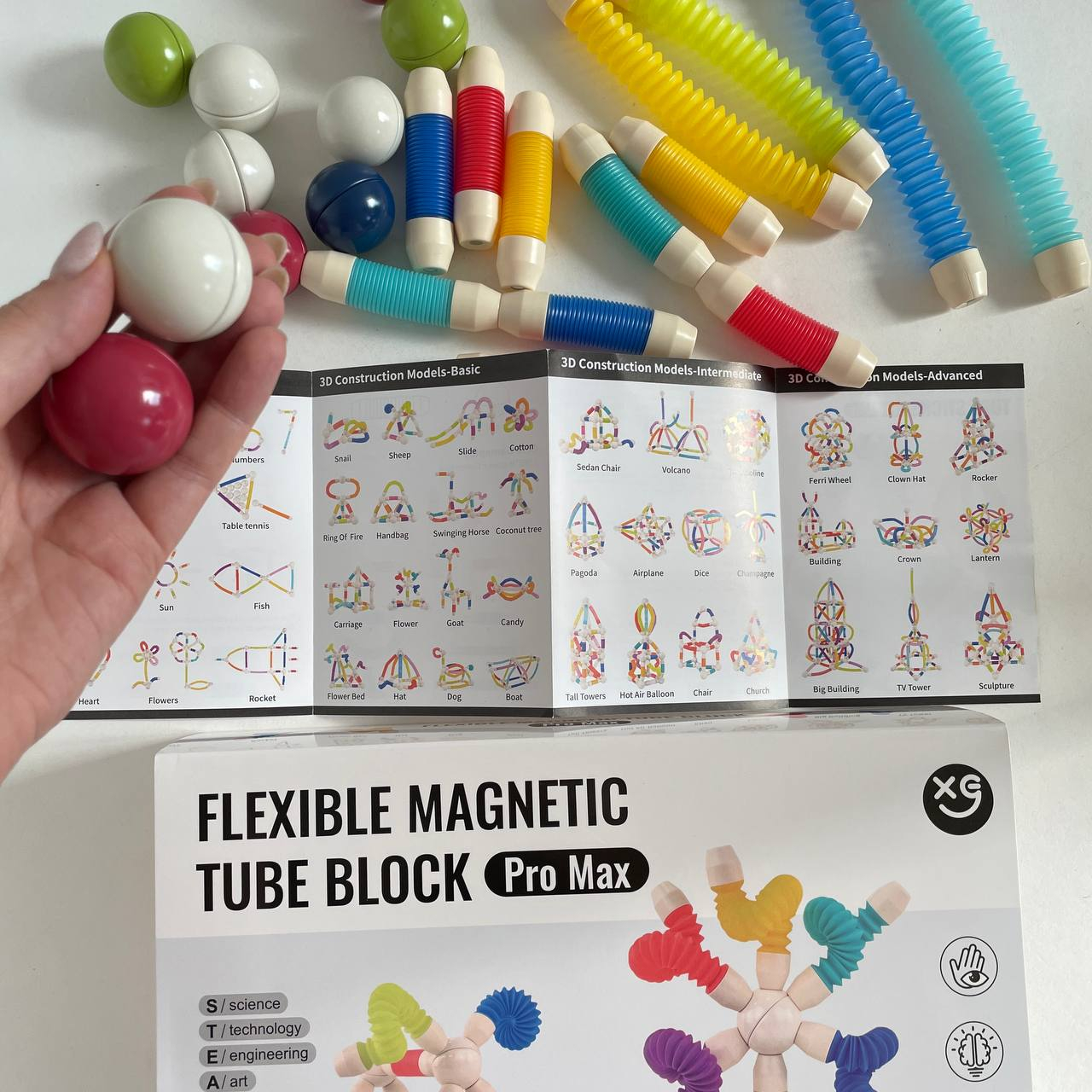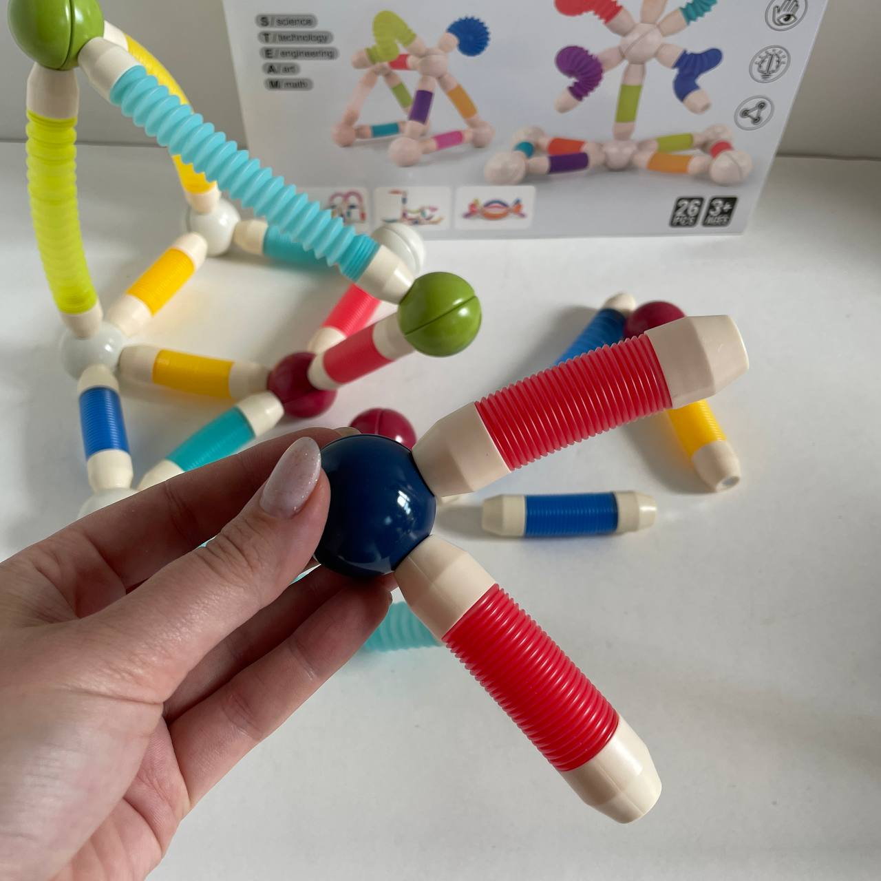 Магнітні трубочки дозволяють створювати тунелі, вежі, фігури та будь-які інші будівлі, які тільки вигадає дитина. Конструктор з магнітним з'єднанням підходить для дітей віком від 2 років. Всі елементи виготовлені із міцного та безпечного пластику, мають приємну форму для дитячих рук.
