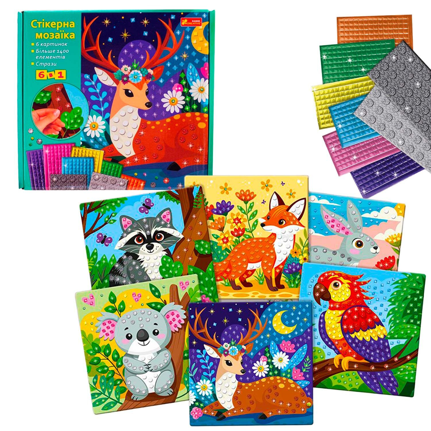 Великий набір дитячої творчості. Стікерна мозаїка (6 картинок, 1400 наліпок) 10100678У