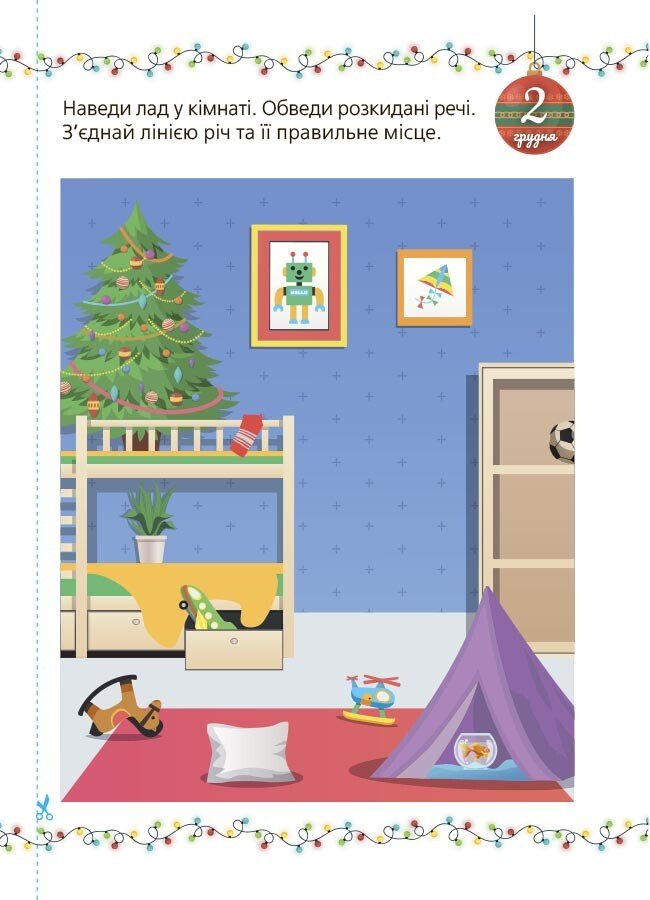 Творчий зошит із саморобками та завданнями для дітей 4–6 років! Цей зошит справжній скарб. Перед вами — дитячий простір для творчості, побудований за принципом адвент-видання. На його сторінках на дітей чекають зразок листа святому Миколаю, 15 шаблонів для створення новорічних листівок, цікаві завдання для розвитку дитини та багато корисних ідей для занять у колі близьких та друзів.