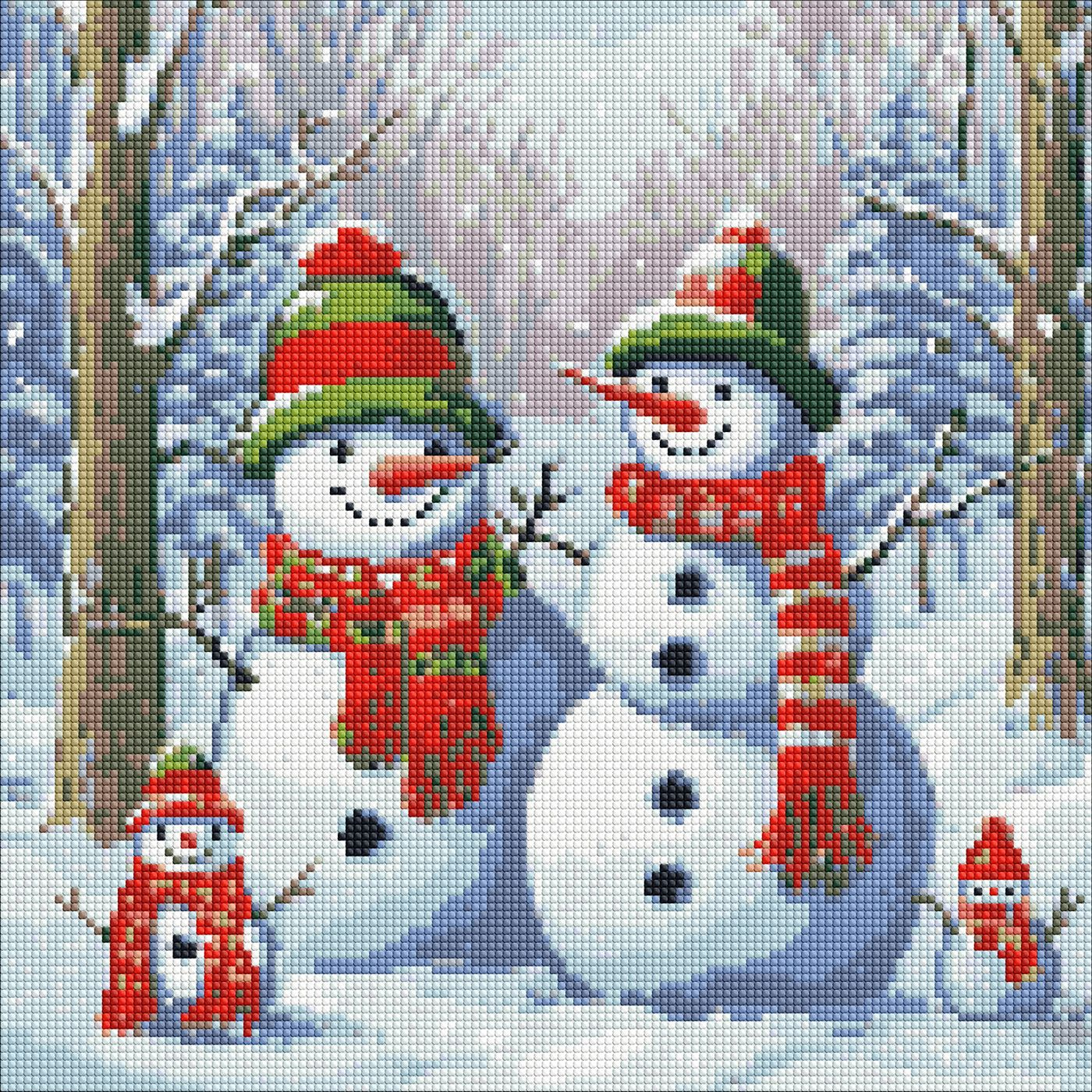 Алмазна мозаїка Чарівні сніговики з АВ стразами, 40х40см, AMO7962, Ideyka