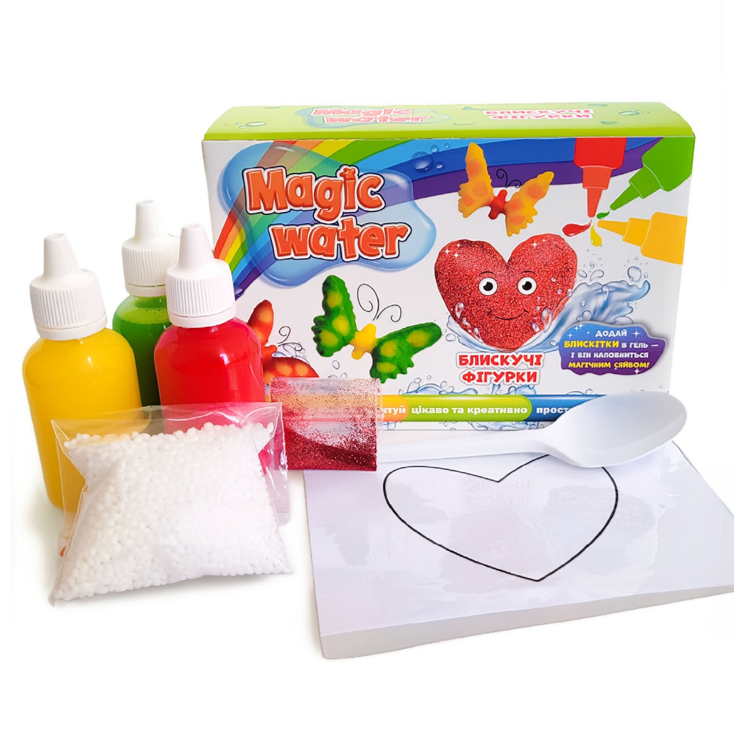 Набір для творчості аквагель Magic water. Блискучі фігурки MV6031-05 Ludum: 3 кольорові гелі, ложка, пакетик сухої речовини