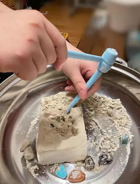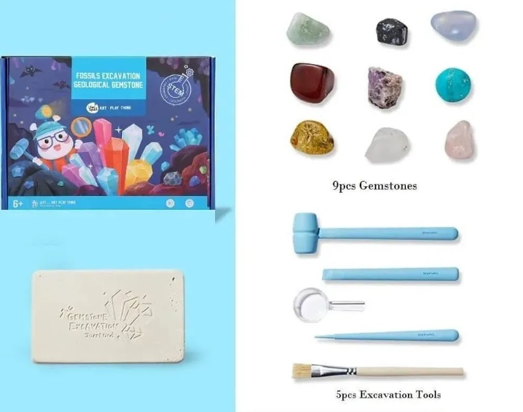 Набір для розкопок самоцвітів буде ідеальним подарунком, адже в процесі розкопок дитина знайде 9 каменів самоцвітів. Процес розкопок дуже захоплюючий для дітей. У комплекті для зручності є 4 інструменти та лупа для вивчення каменів самоцвітів.