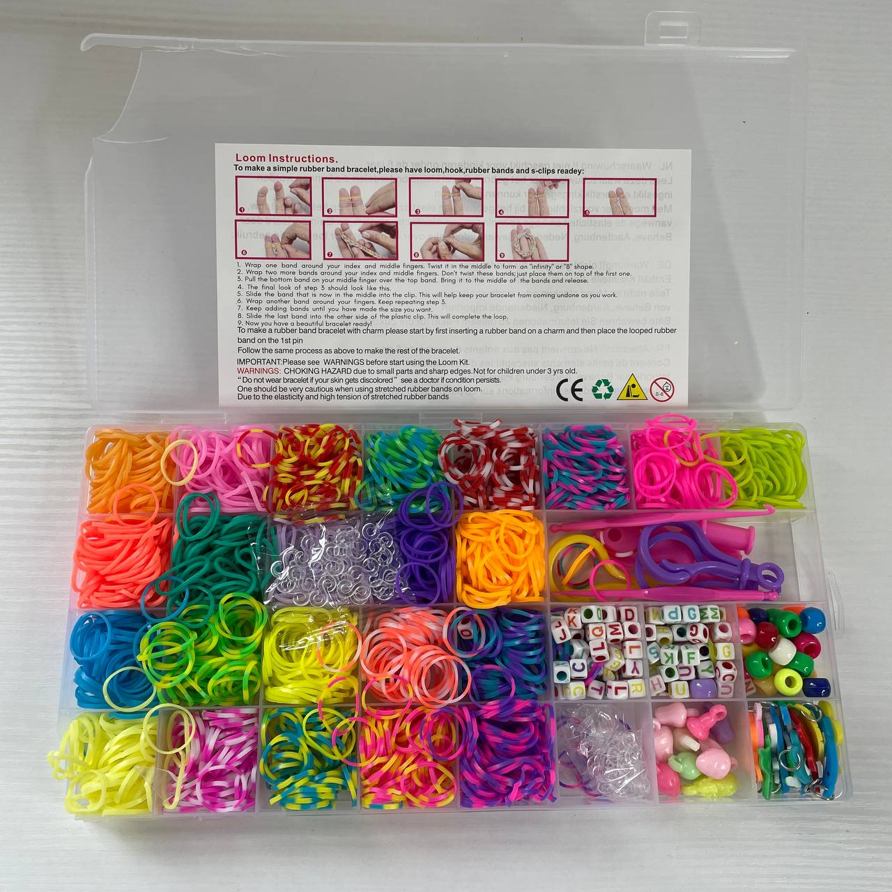 УЦІНКА!!Набір резиночок для плетіння 23 кольори, пластикова фурнітура, рогатки, гачки, пластикові карабіни, намистинки, підвіски, інструкція, D 881