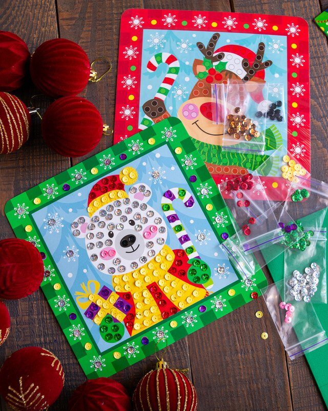 У цьому креативному комплекті є дві святкові листівки та понад 350 різнокольорових паєток, щоб малюк зміг власноруч створити яскравий подарунок. Покрокова інструкція з позначками робить процес легким навіть для дітей від 4 років, а результат завжди тішить та дивує.