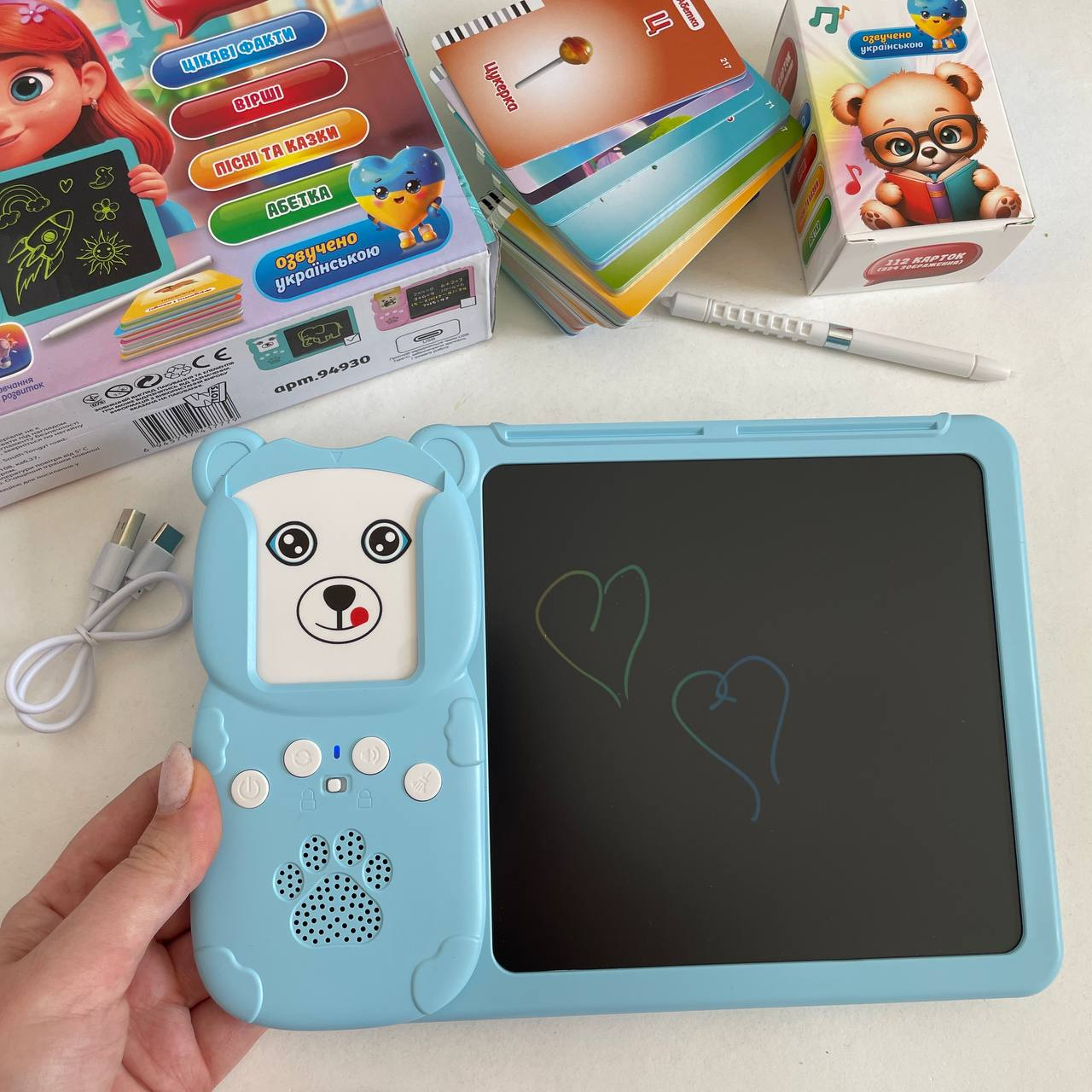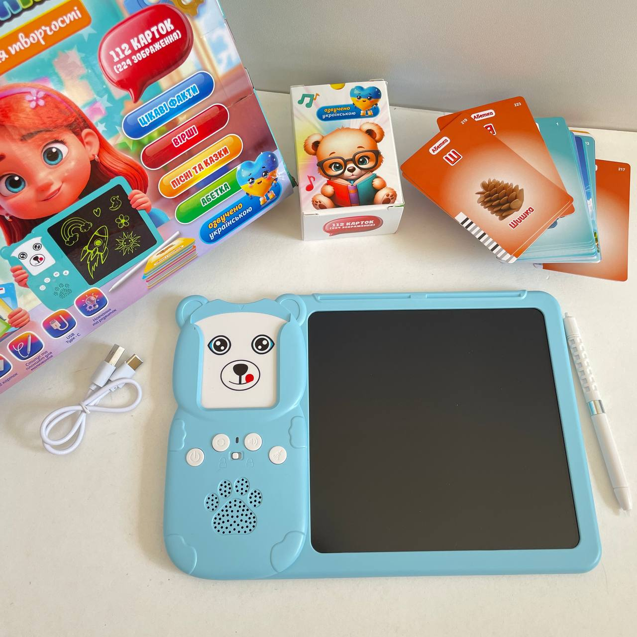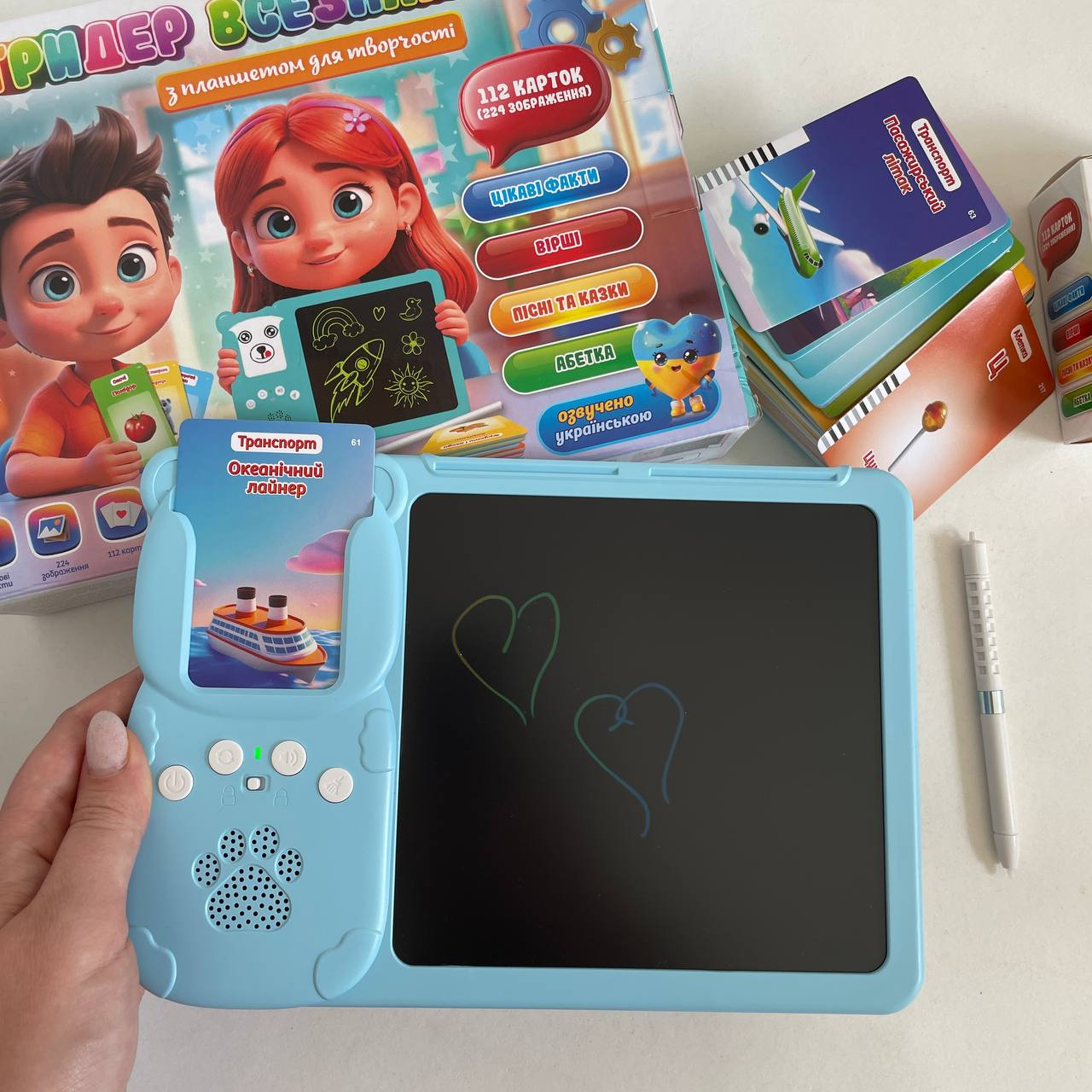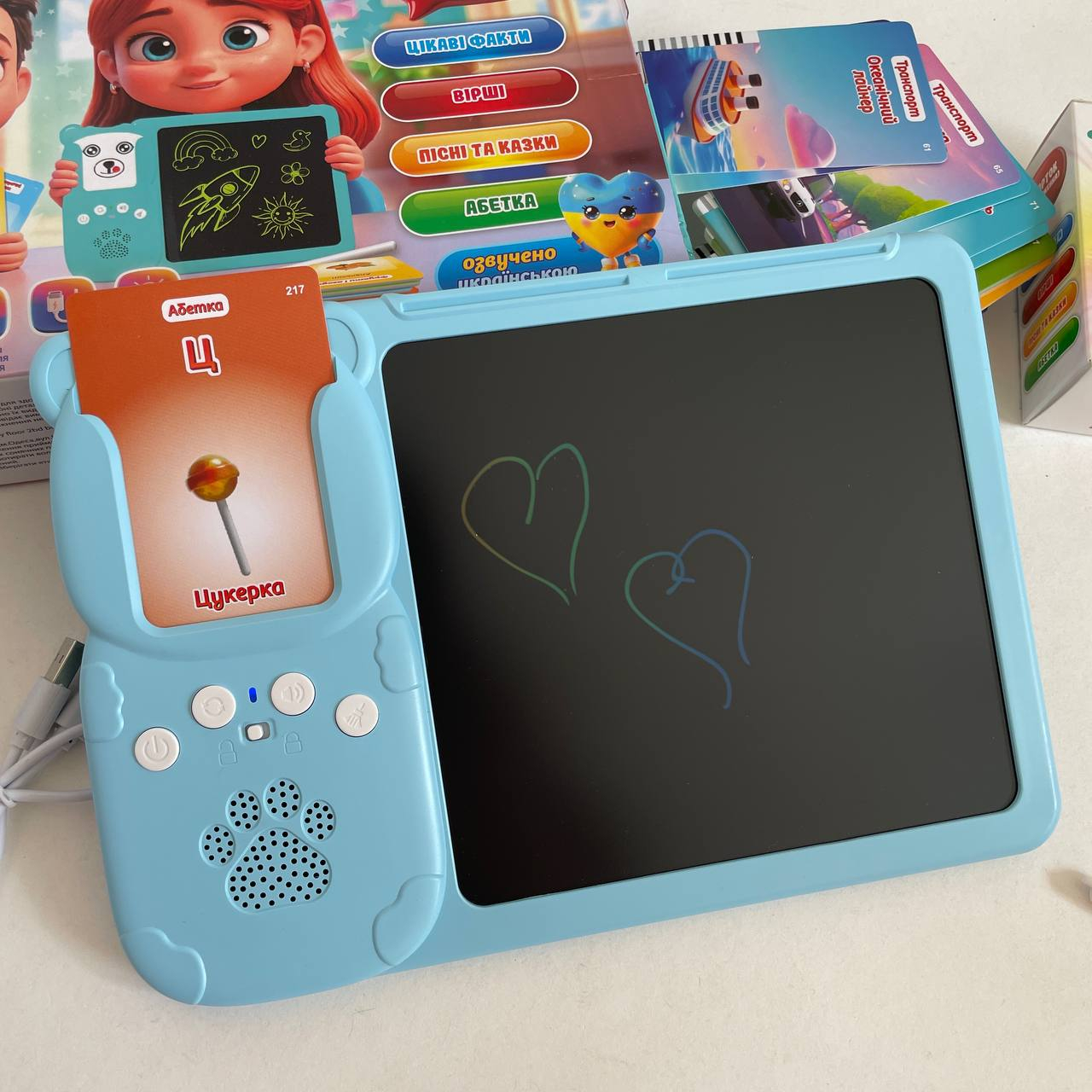 Інтерактивний "Картридер Всезнайко" українською мовою LCD-планшет блакитний , 122 карток 94930