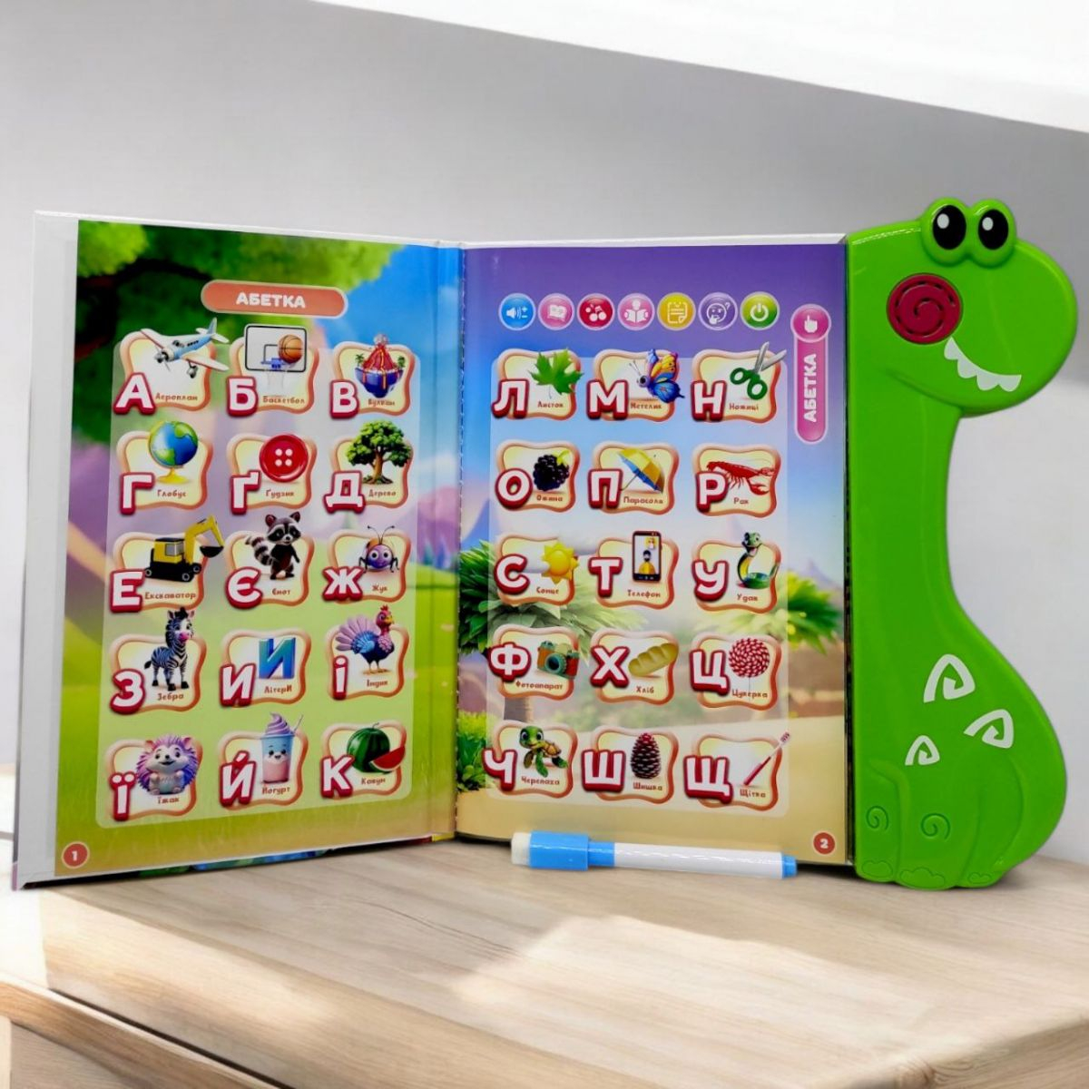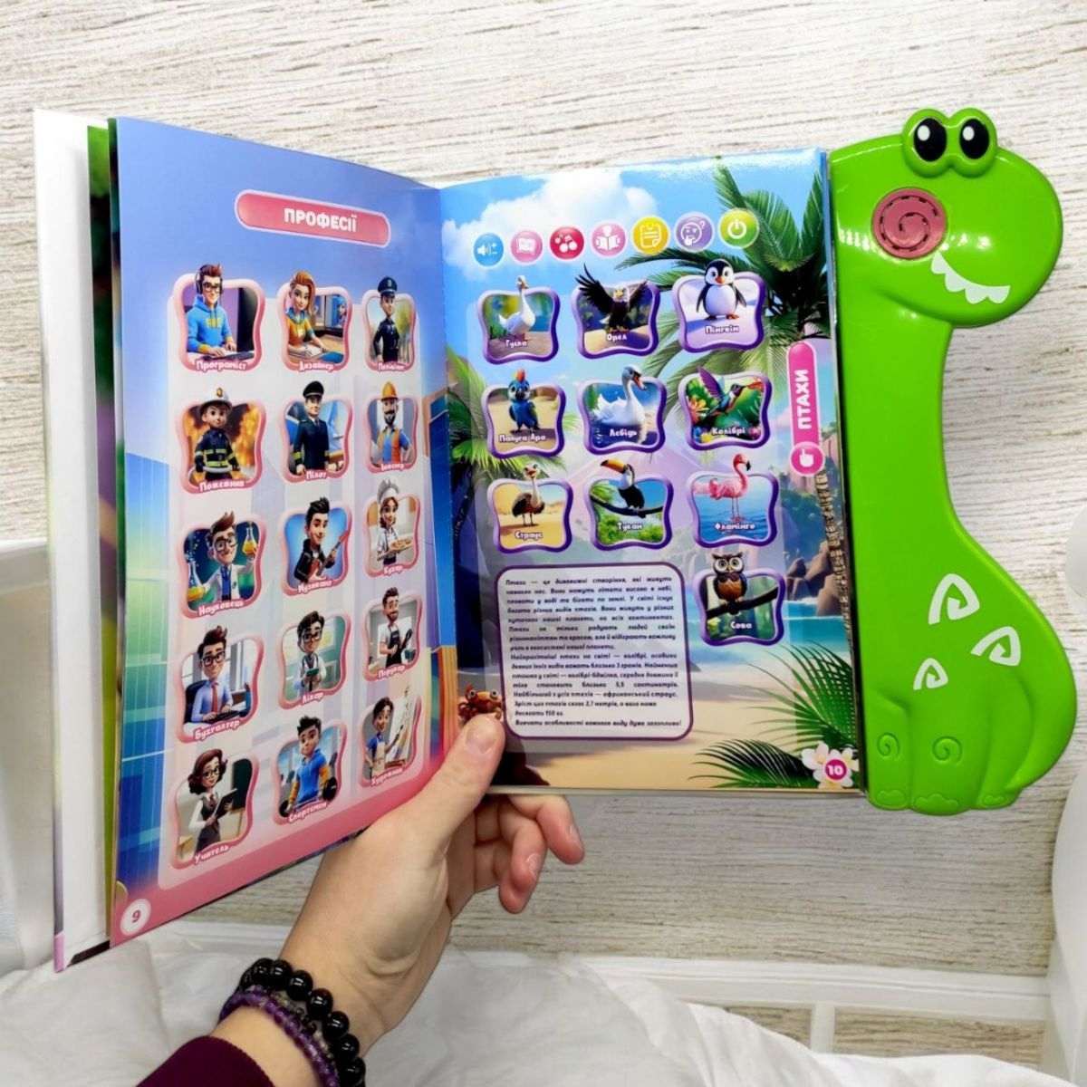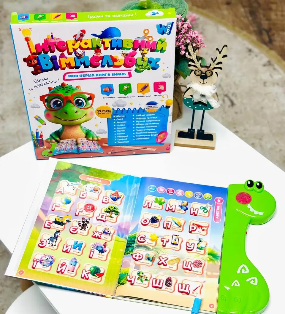 Кожна сенсорна кнопка відкриває нову сторінку цікавої інформації, спонукаючи малюків до подальшого дослідження.