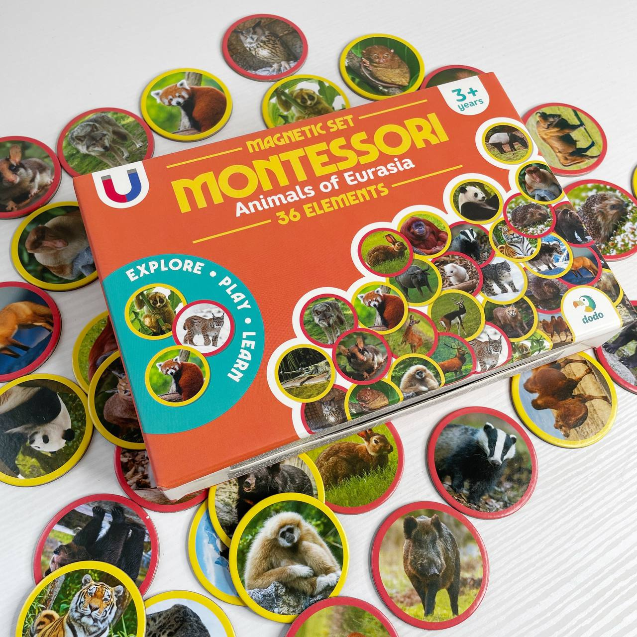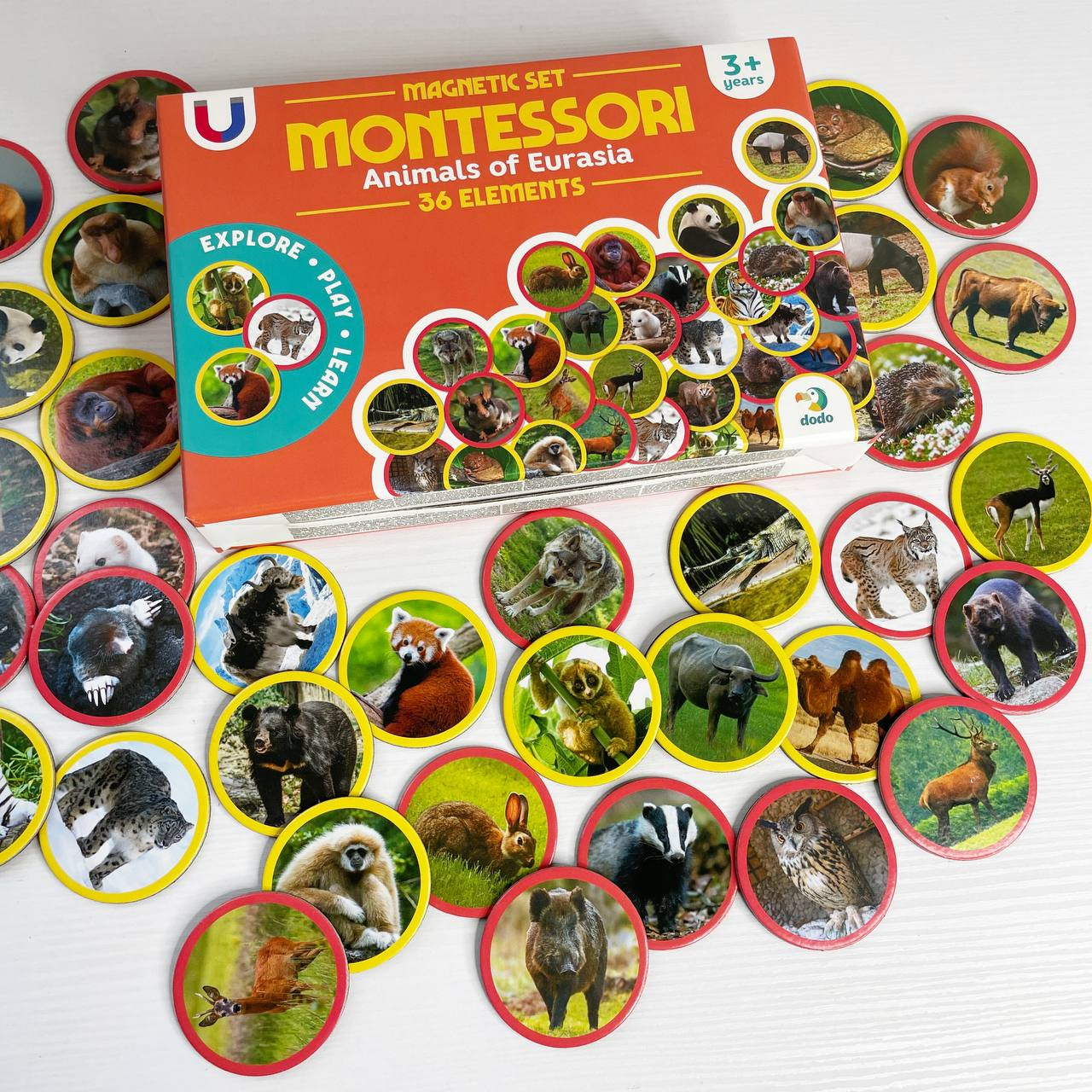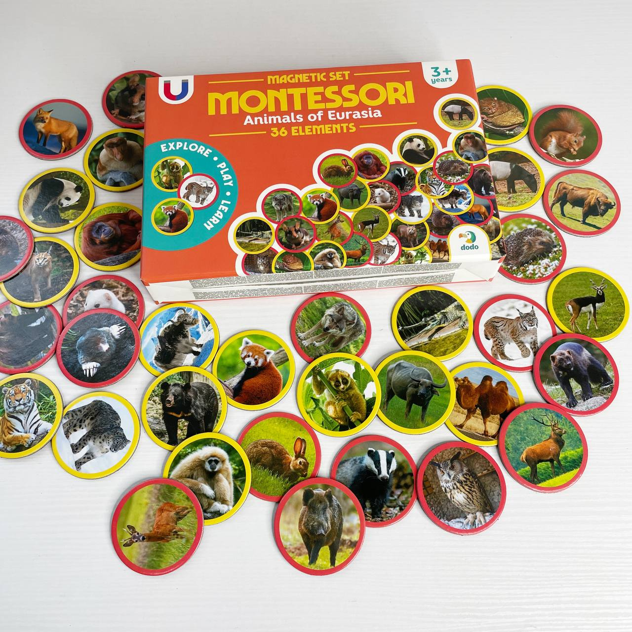 Магнітний набір Монтесорі «Тварини на континентах: Євразія» 36 елементів, Dodо, 200285