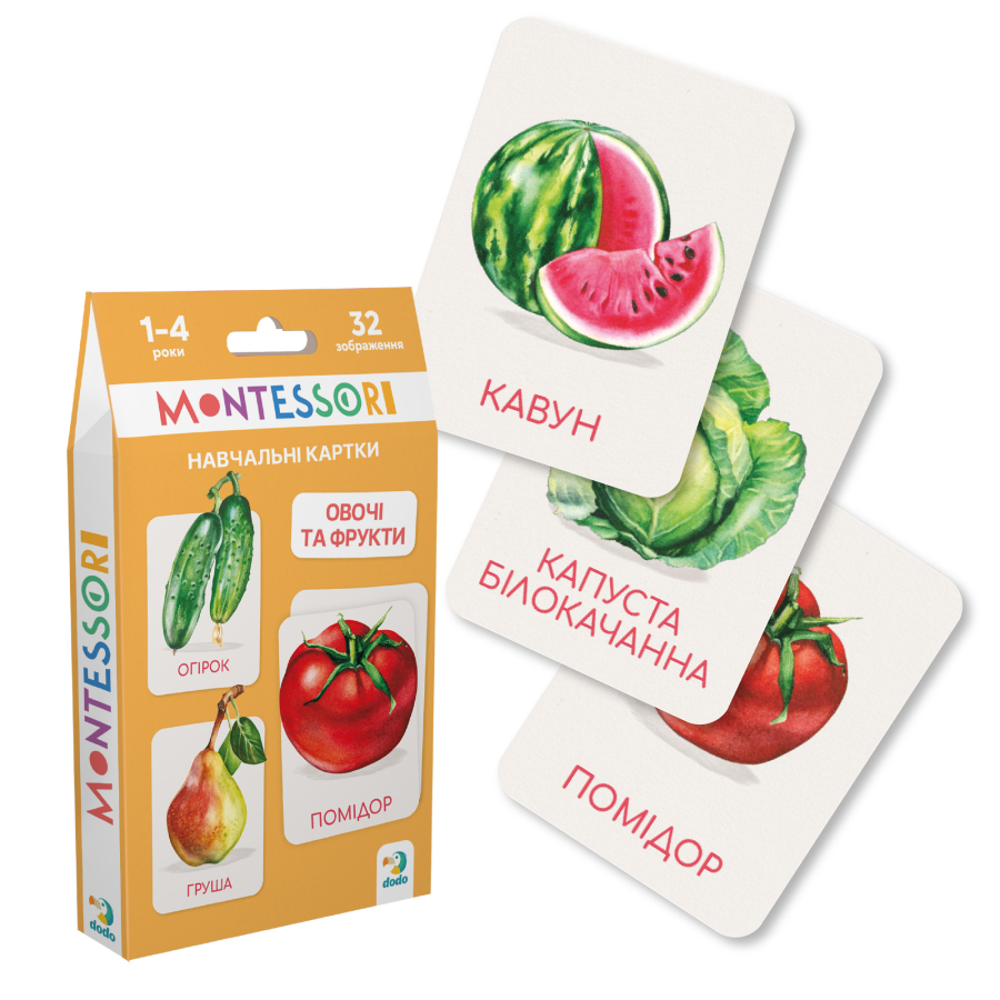 Набір навчальних карток "Монтессорі. Овочі та фрукти", DoDo, 301232