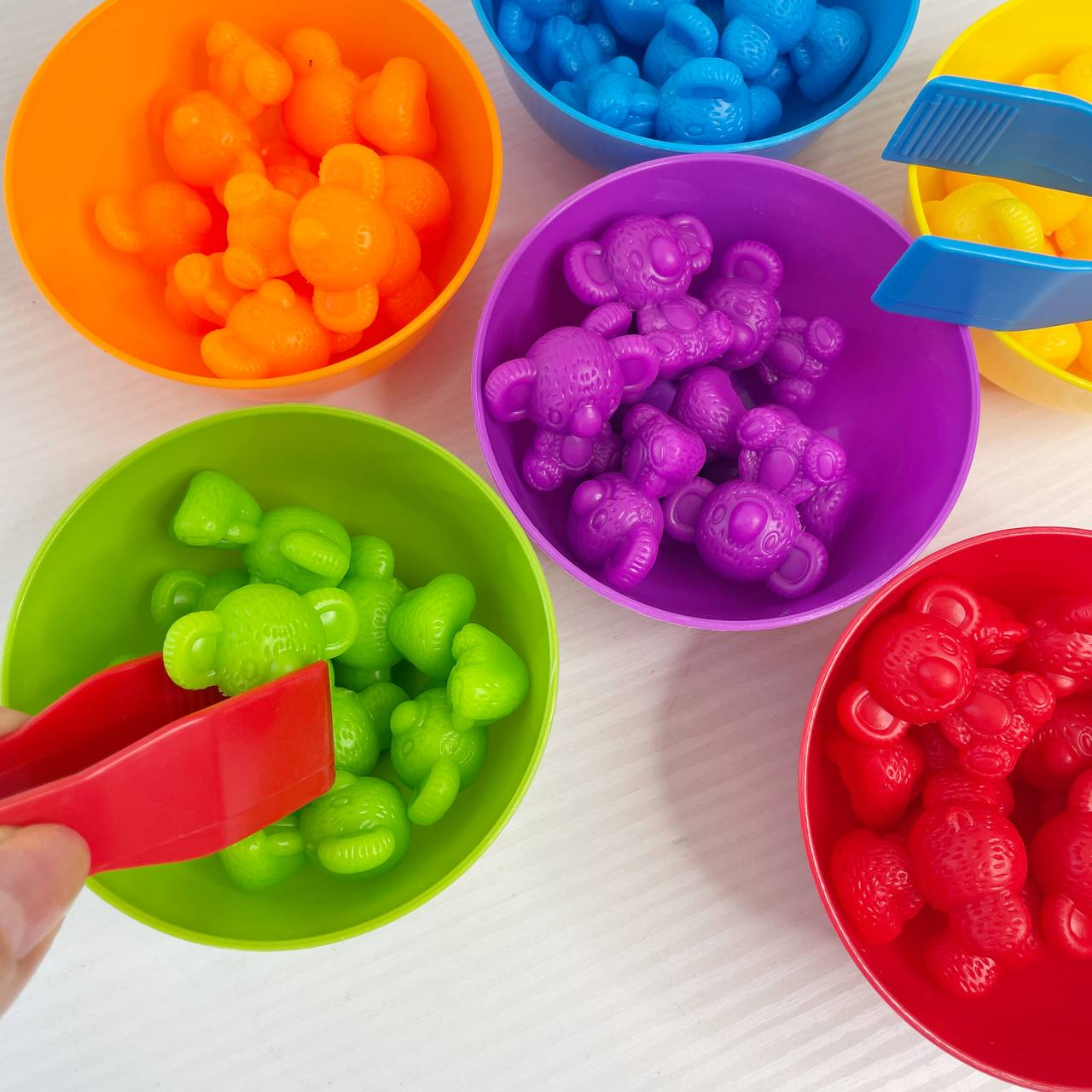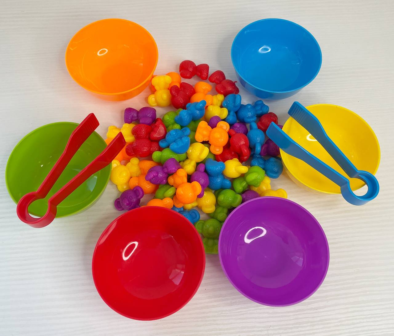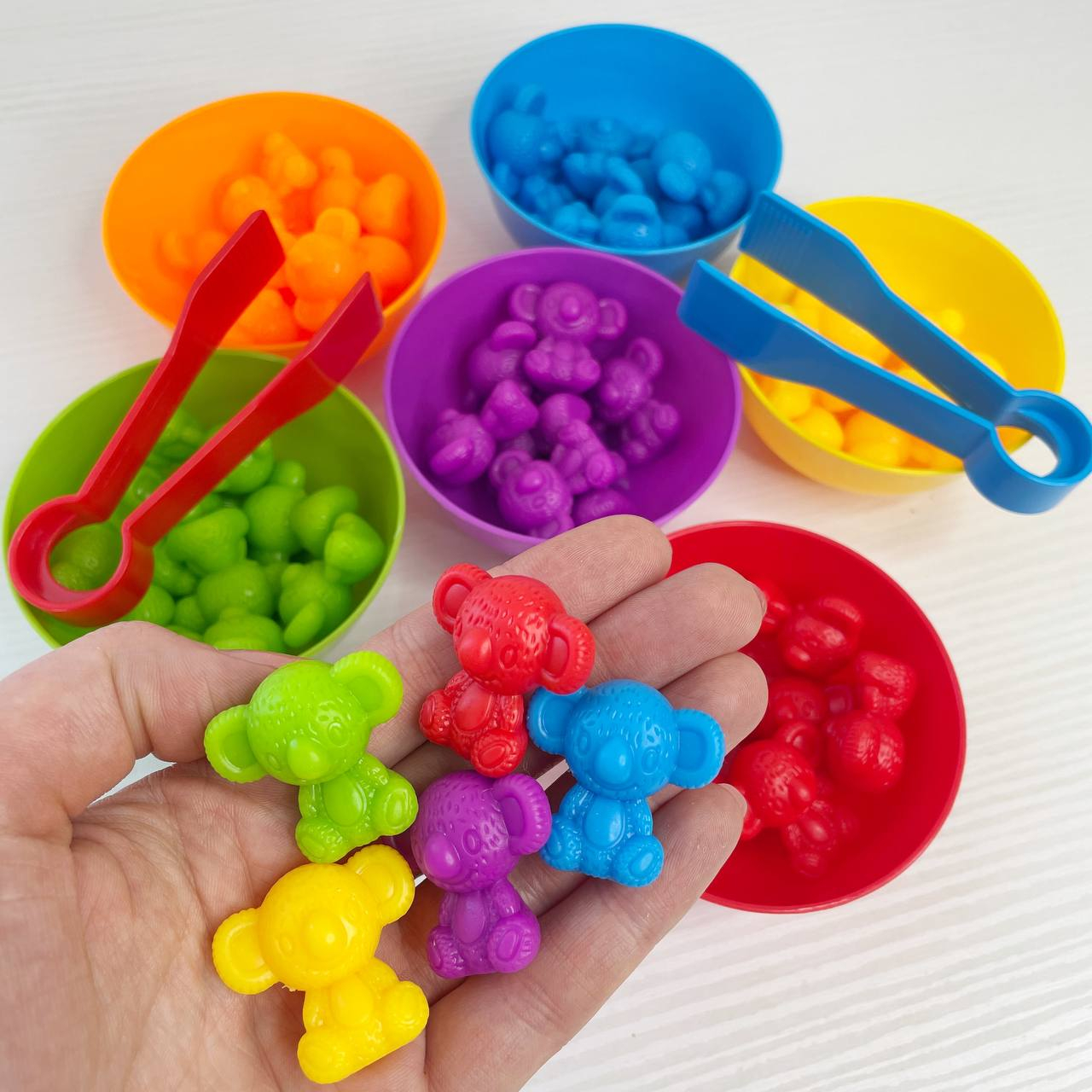 Під час гри дитина вивчатиме назви кольорів, вчитиметься їх розрізняти, познайомиться з рахунком та розвиватиме дрібну моторику рук. Логічна гра “Ведмедики” стане чудовим інструментом для отримання базових знань.