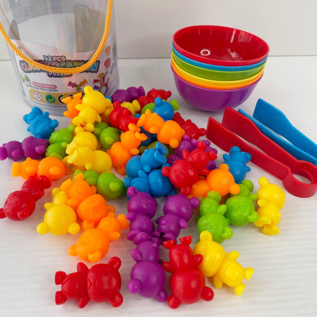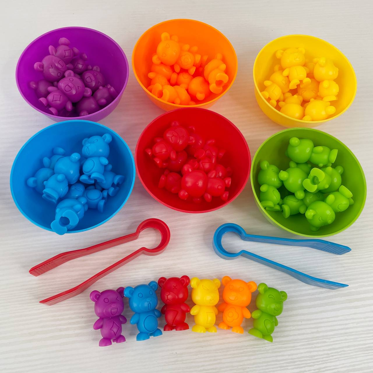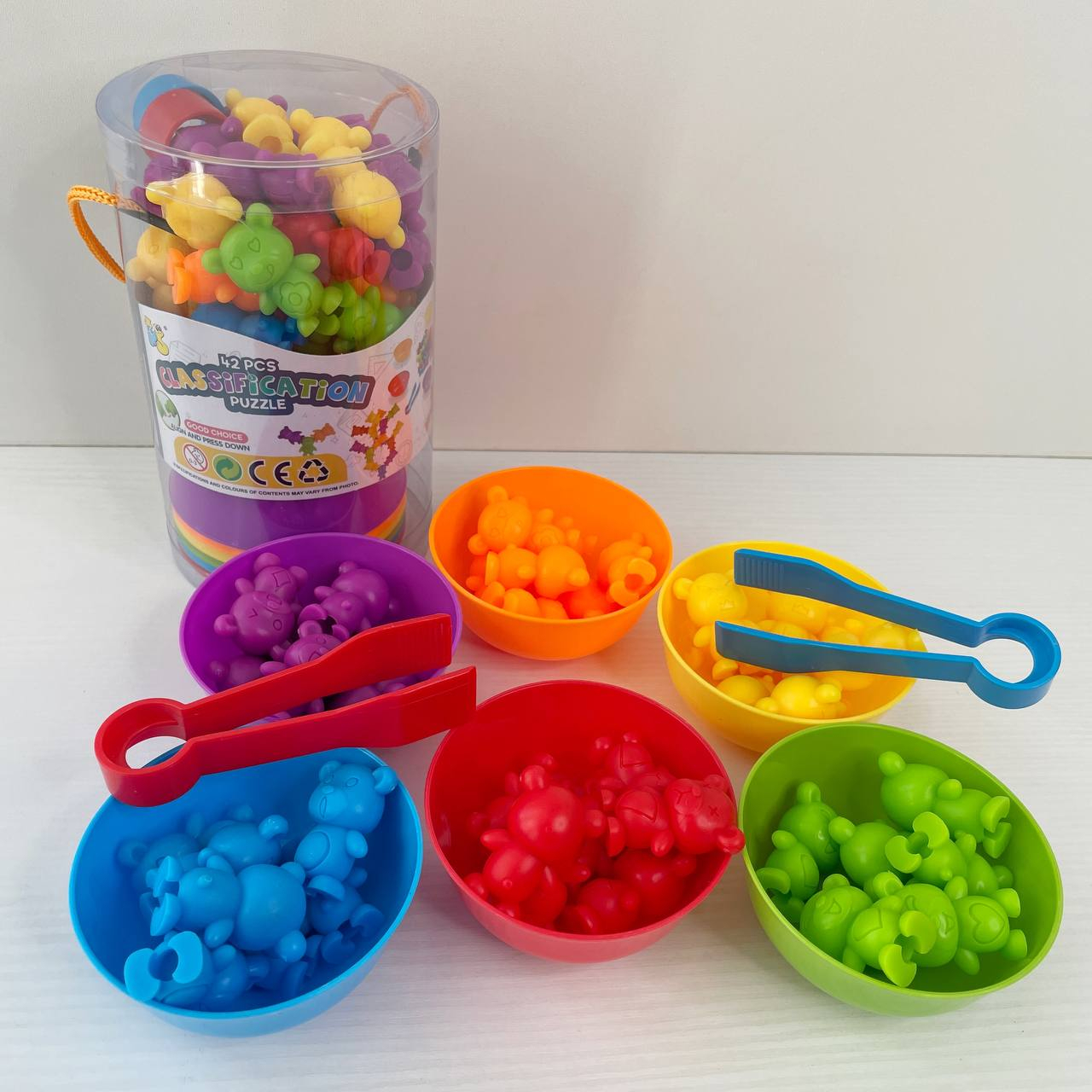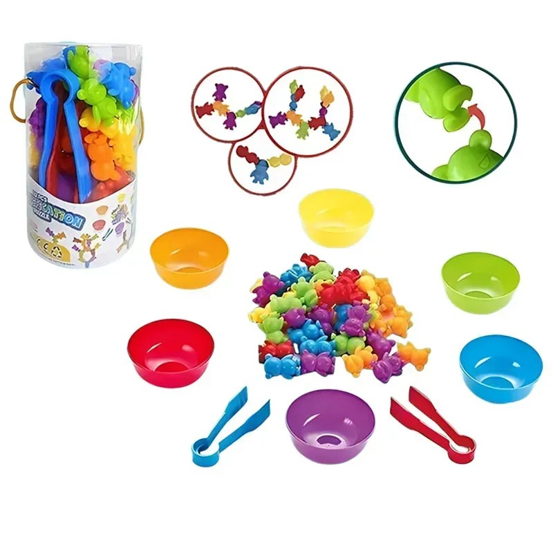 Логічна гра-сортер з ведмедиками, 6 тарілочок, 2 пари щипців, медведики з'єднуються, 2188-96