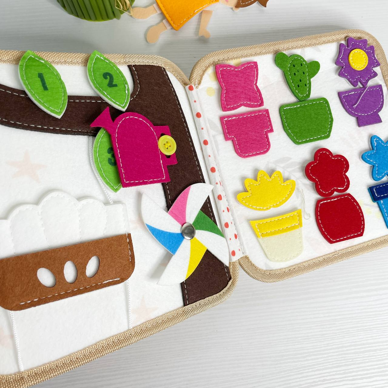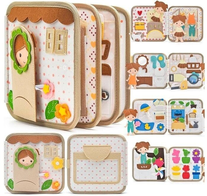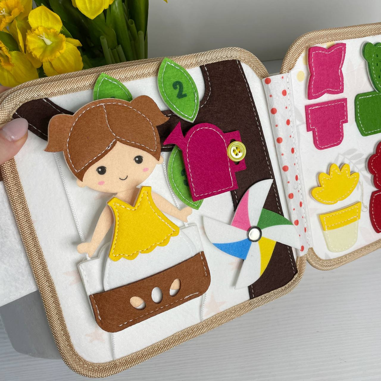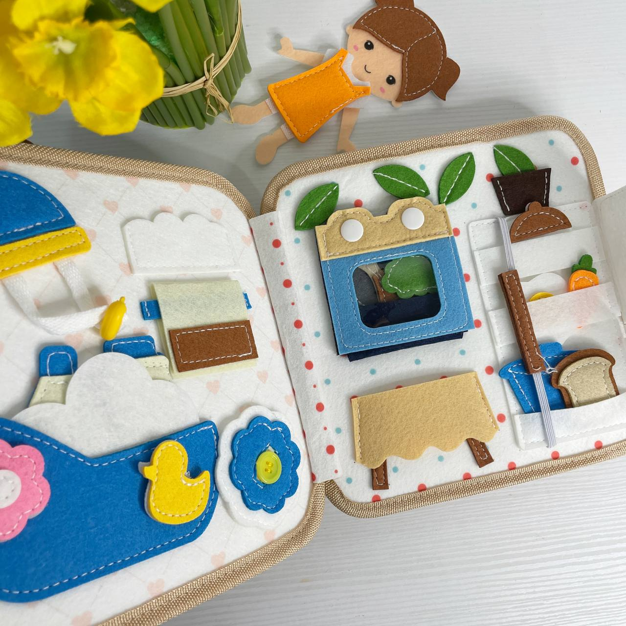 М'яка книжка-бізіборд 10 сторінок, фетрова лялечка, липучки, застібки, гардероб із одягом, ванна кімната,кухня, С 75319