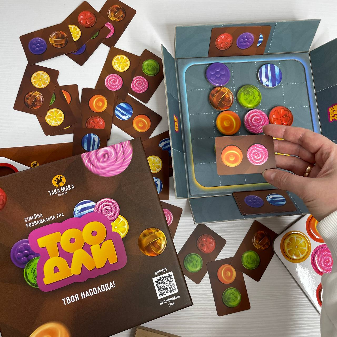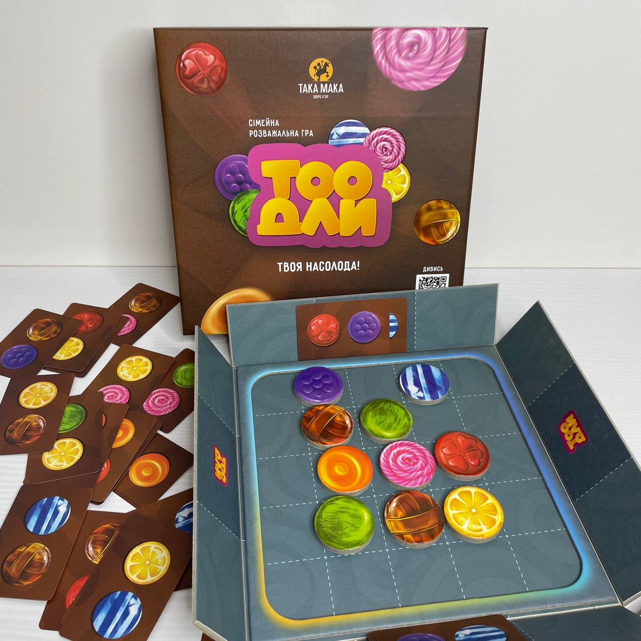 Настільна гра Тоодли — це цікава сімейна настілка, в котрій потрібно перемішати цукерки по полю таким чином, щоб зібрати якомога більше карток-завдань.