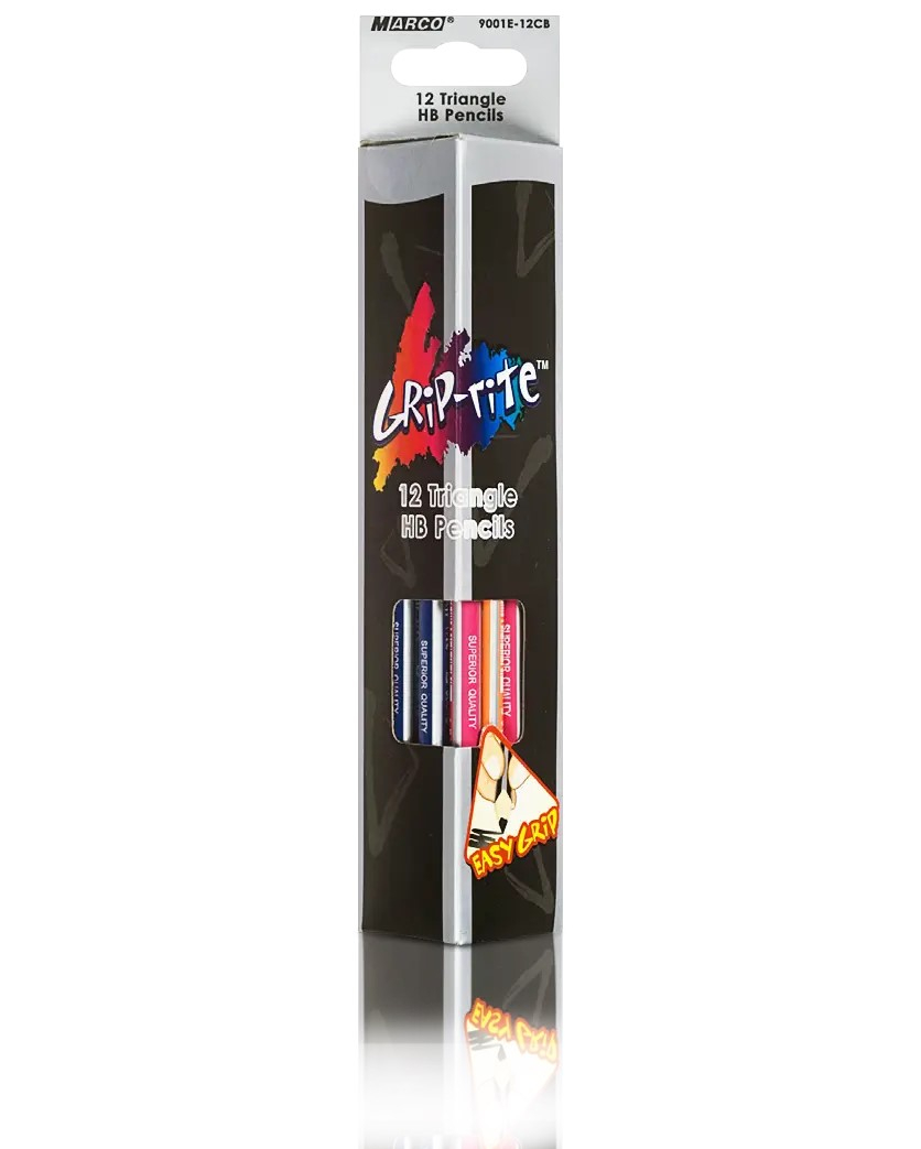 Олівці MARCO 9001ЕМ-12СВ графітові з гумкою, НВ тригранні (12шт) "Grip-Rite"