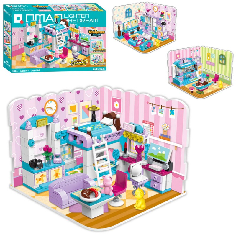 Пластиковий конструктор 3 в 1 Кімната дівчинки 194 деталі Qman 4801 Unlimited Ideas