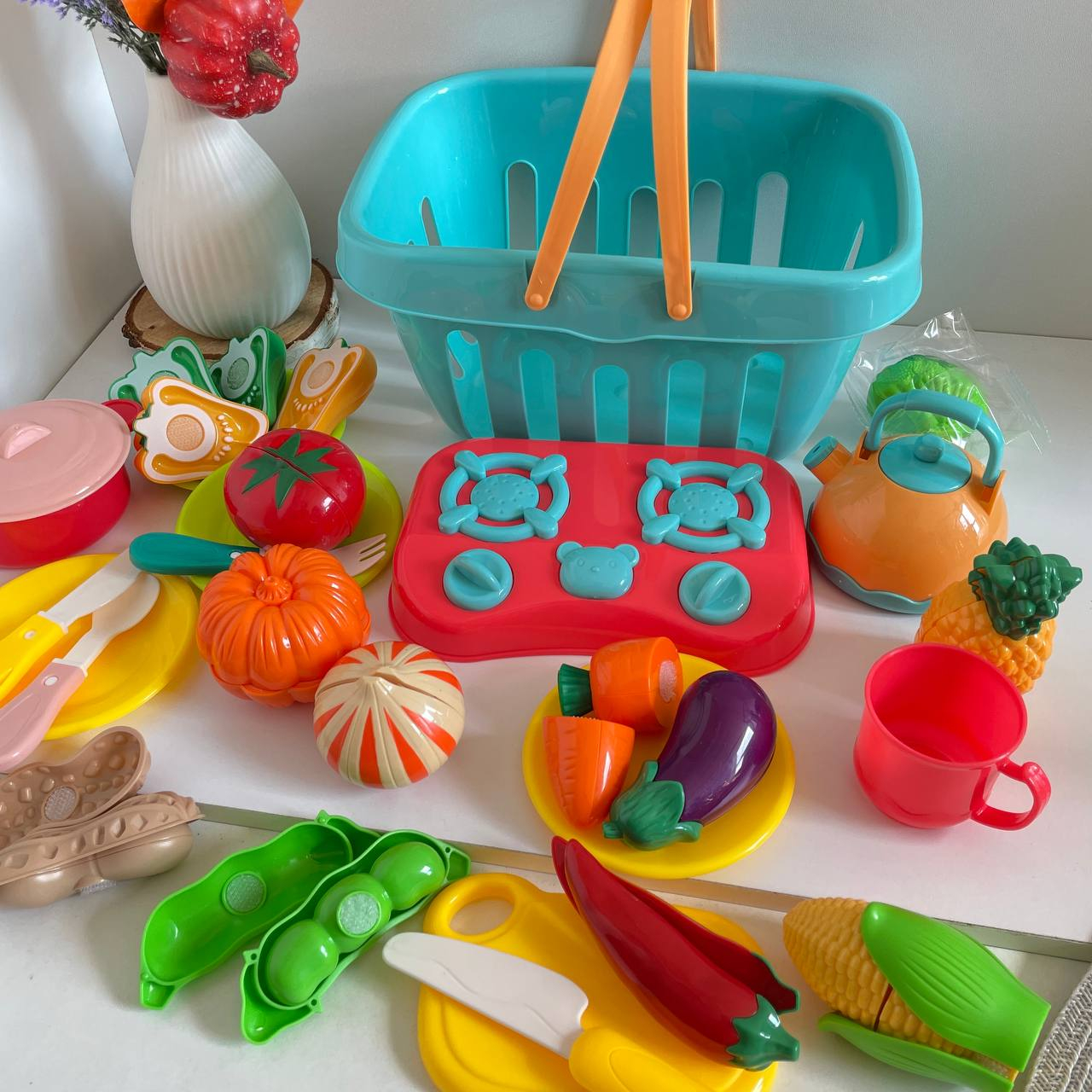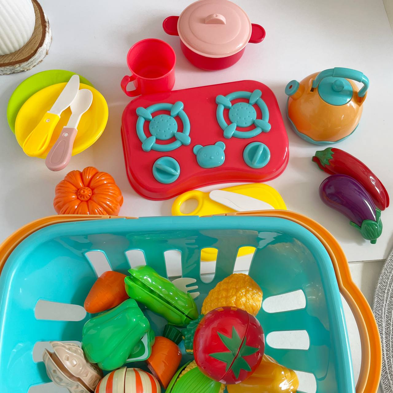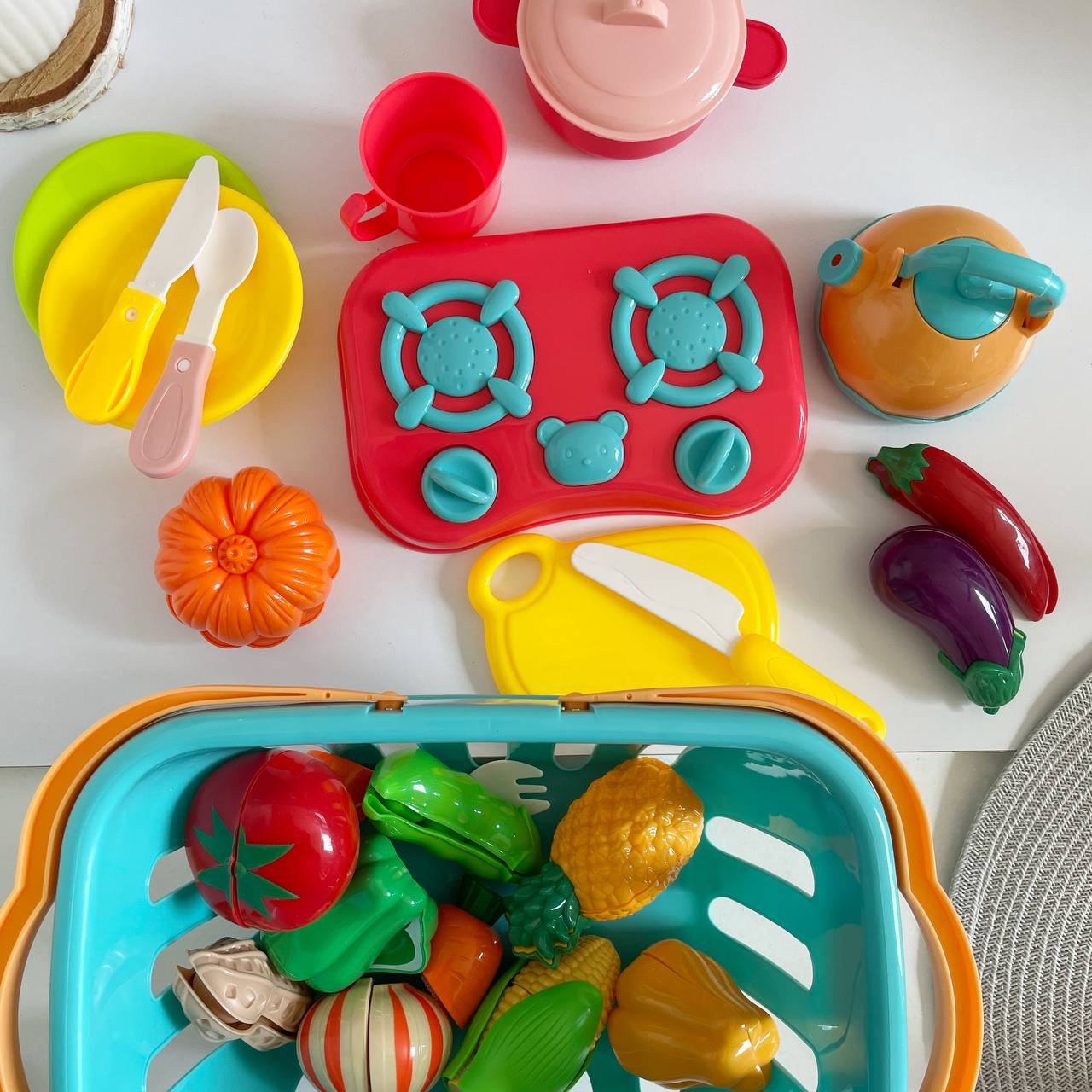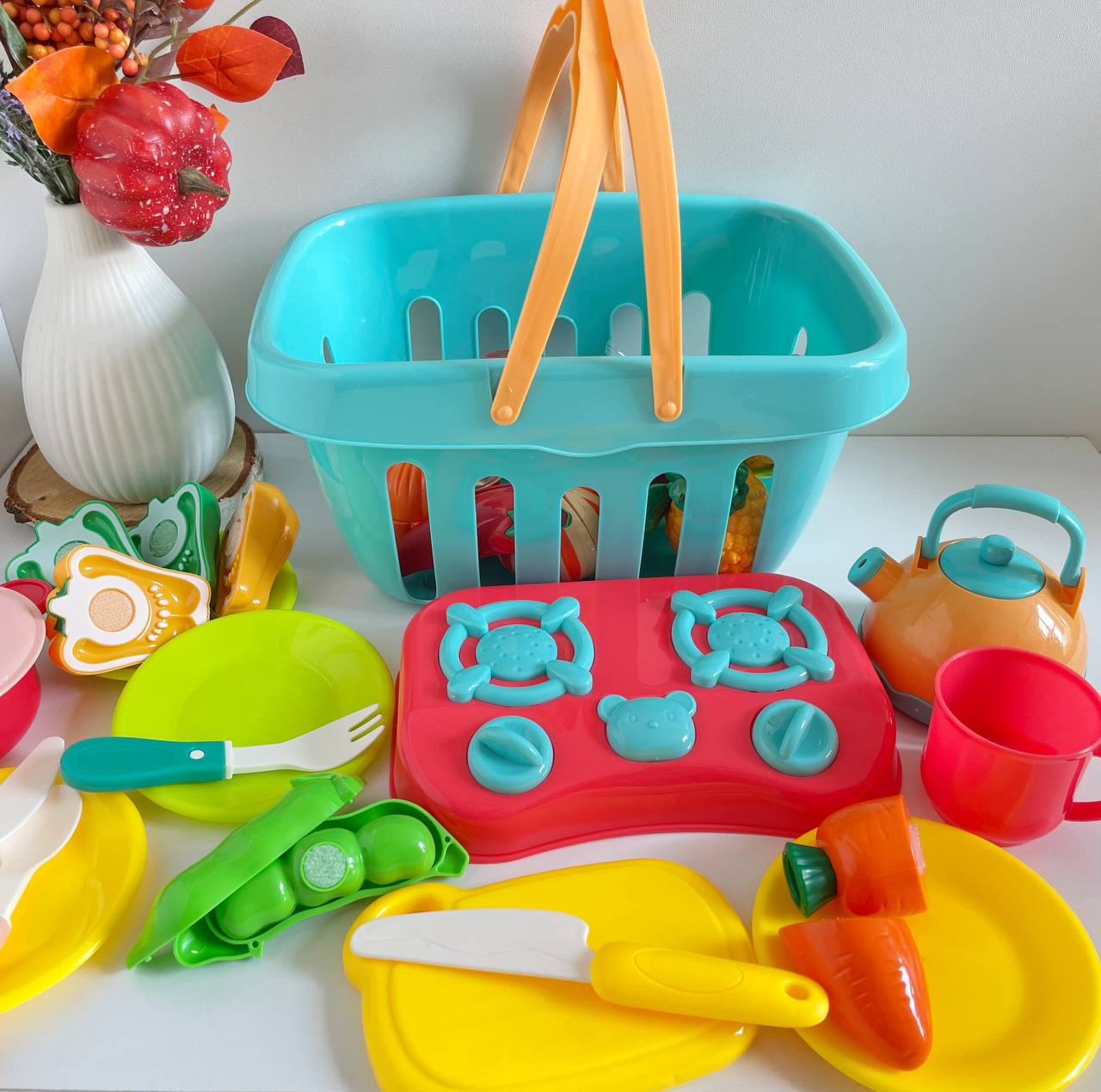 - у наборі представлені продукти, іграшковий посуд та конфорки;