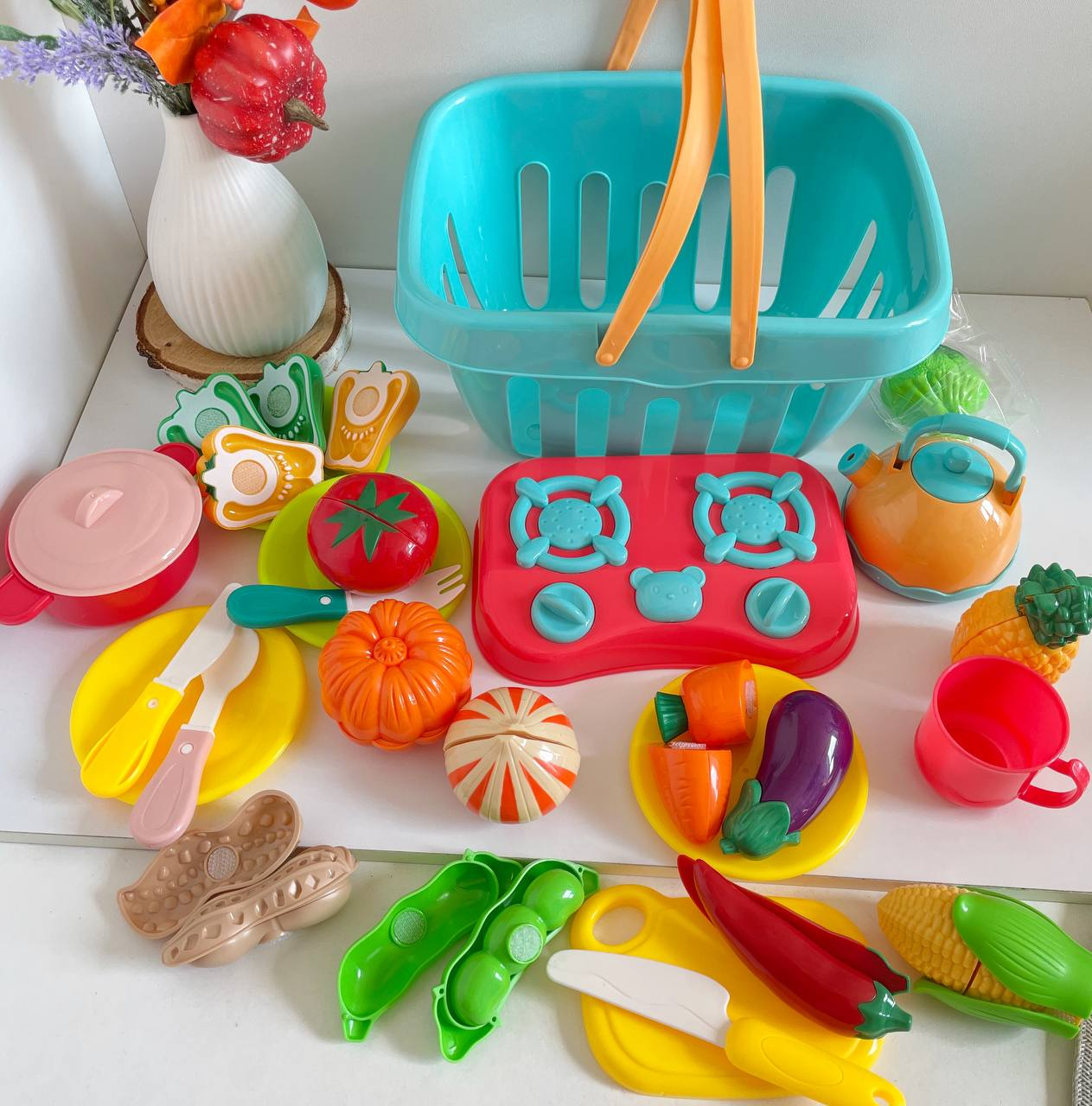 Набір продуктів овочі-фрукти на липучках з посудкою в кошику BC 8012