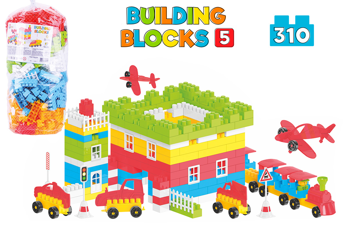 У наборі 310 цікавих різноманітних деталей яскравих класичних кольорів.