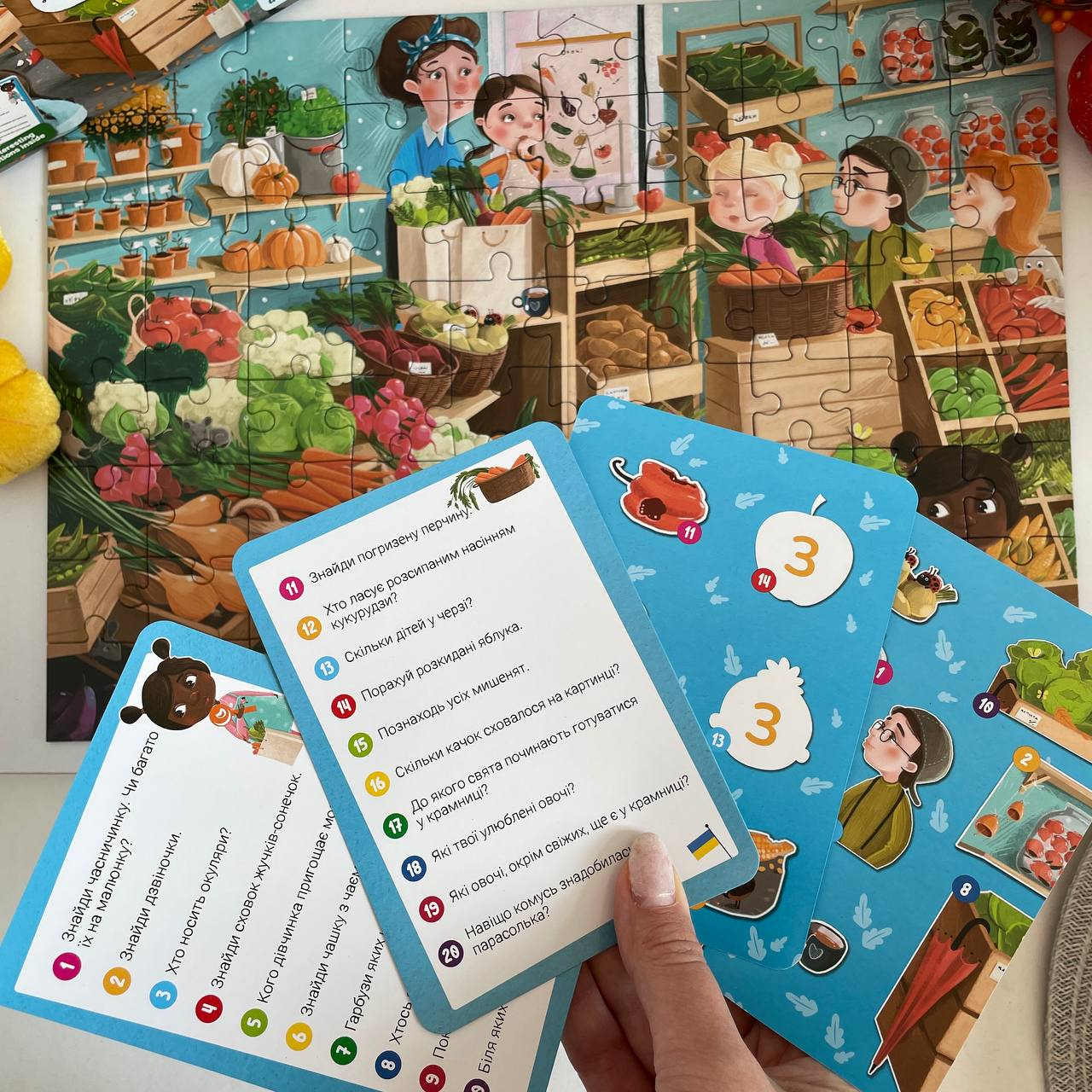 Цей дитячий пазл з завданнями допомагає тренувати зорову пам’ять, дрібну моторику та навички спостереження. Грати можна як самостійно, так і в колі родини.