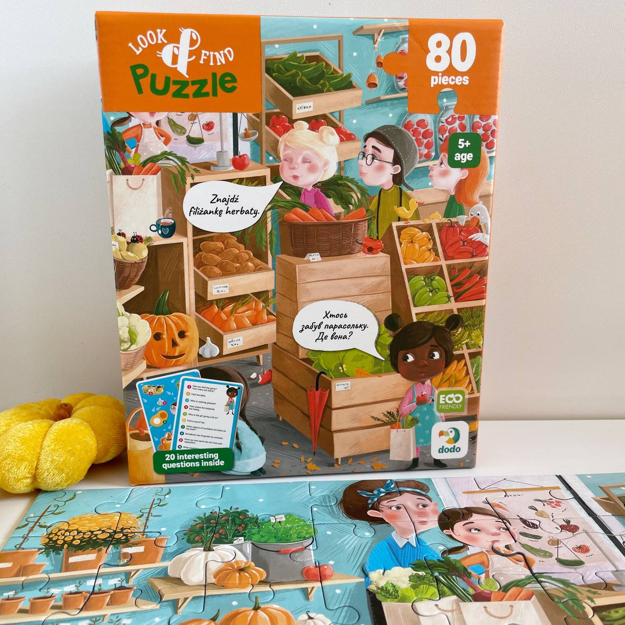 Шукаєте цікавий та розвиваючий пазл для дітей? Подаруйте малюку справжню новорічну пригоду з пазлом "Look & Find Дарунки осені" від бренду Dodo! Цей розвиваючий пазл на 80 елементів поєднує складання з веселою грою на уважність: після завершення картинки дитина має знайти заховані об’єкти за підказками на спеціальних картках.