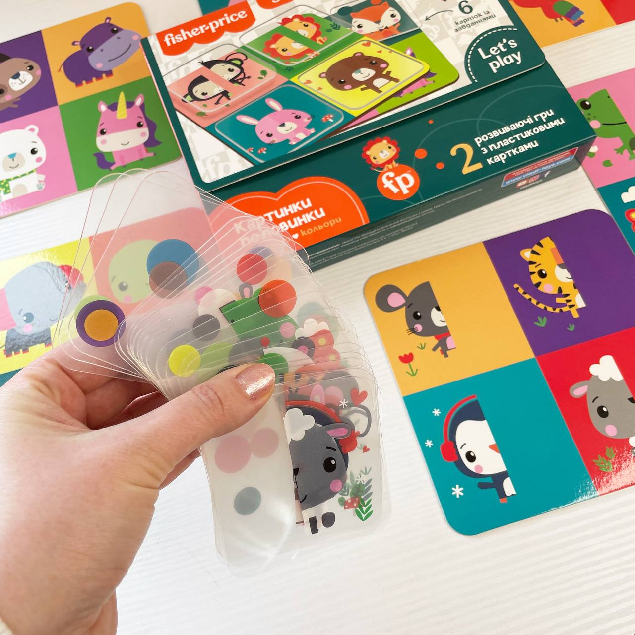 Комплектація: 6 карток із завданнями, 24 прозорі картки, інструкція.