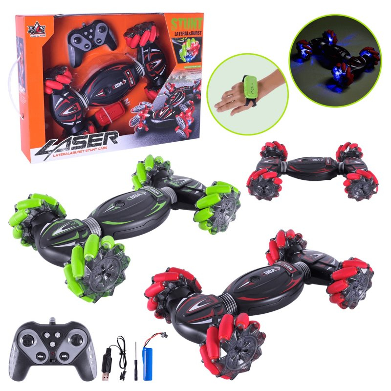 Два типи керування: Модель включає не тільки стандартний пульт, а й спеціальний сенсорний браслет, який дозволяє керувати машинкою за допомогою жестів руки.