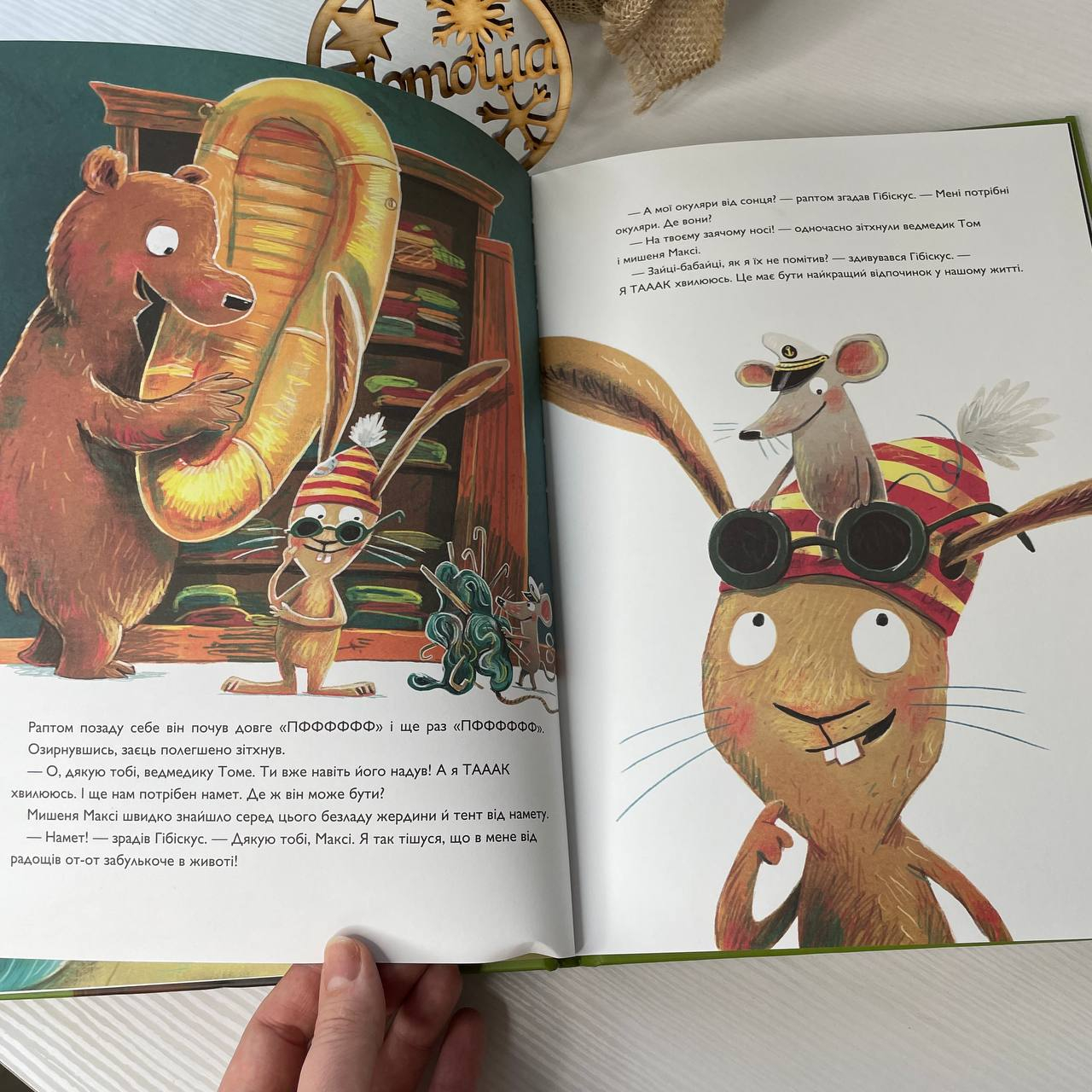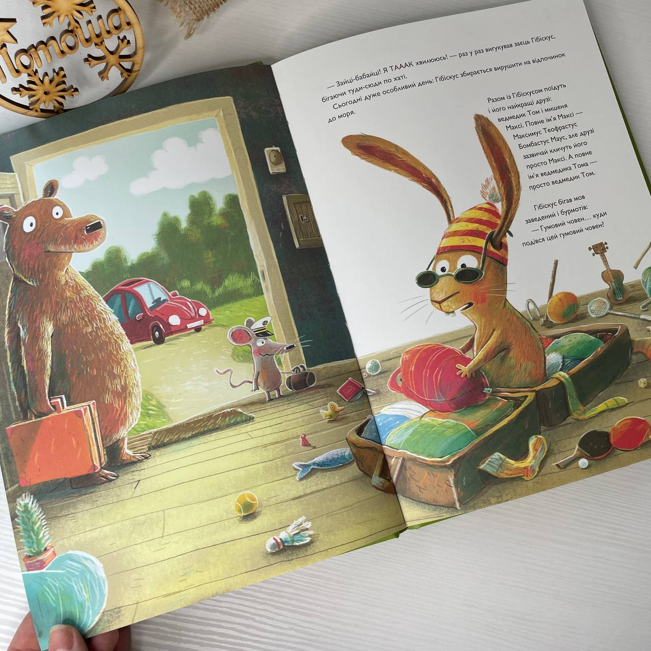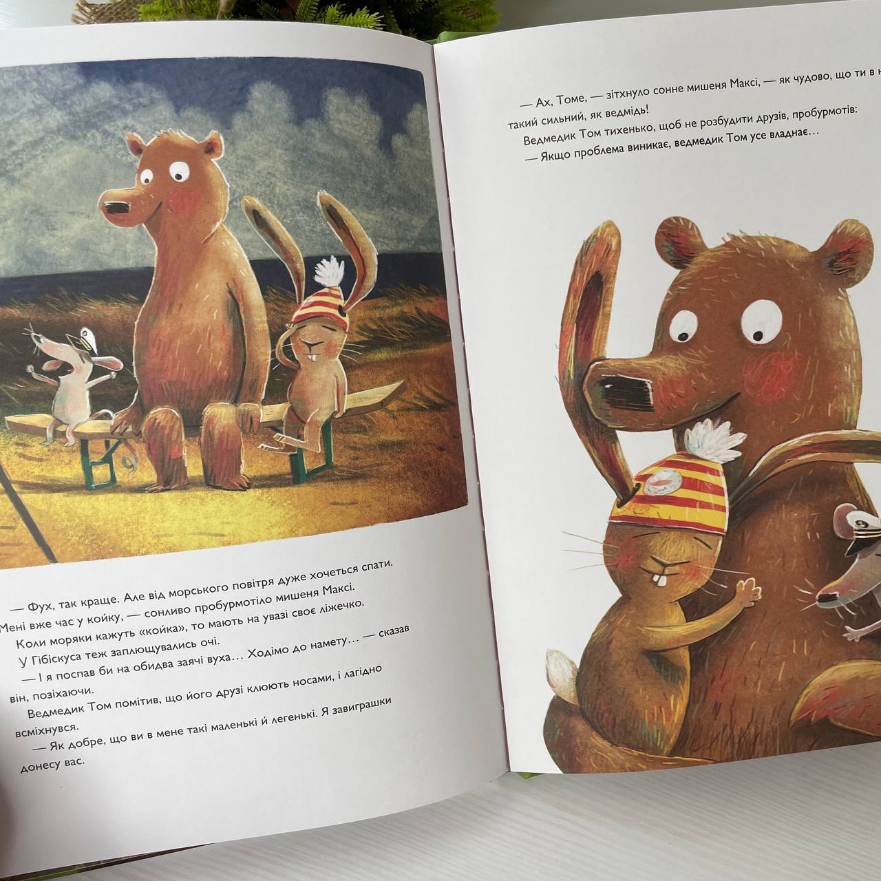 Зайца Гибискуса и его друзей, мышонка Макси и медвежонка Тома, ждет приключение: они едут на море! Заяц очень волнуется, ведь должен лучше подготовиться. Вот только почему-то все валится из лап... Друзьям едва удается доехать до побережья, потому что, оказывается, медвежонок Том слишком большой. А потом чуть не тонет их лодка, потому что Том еще и тяжелый… Наконец дело доходит до ночлега в палатке, и здесь широкий мишка не покидает места для других. Да настоящая дружба способна преодолеть любые препятствия!