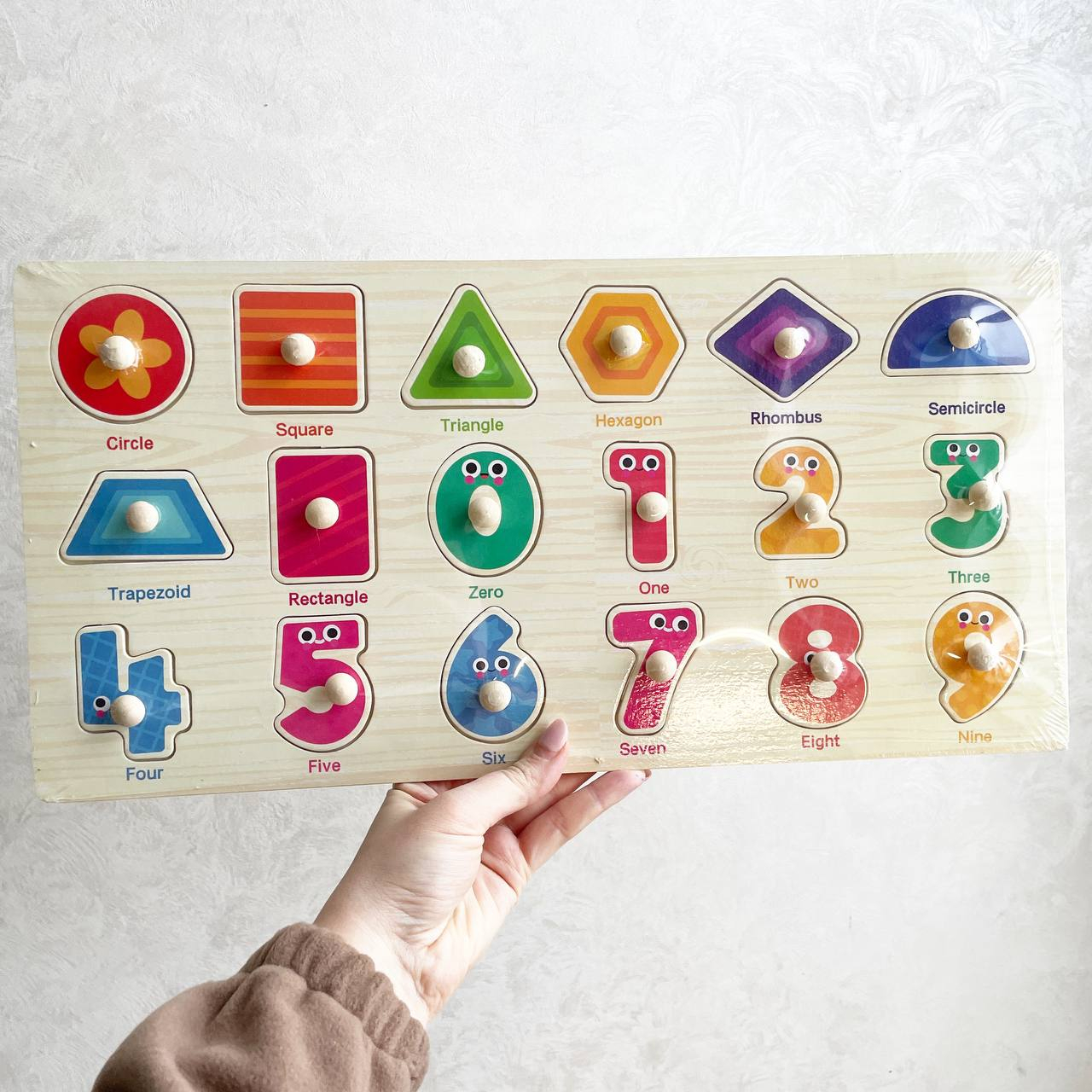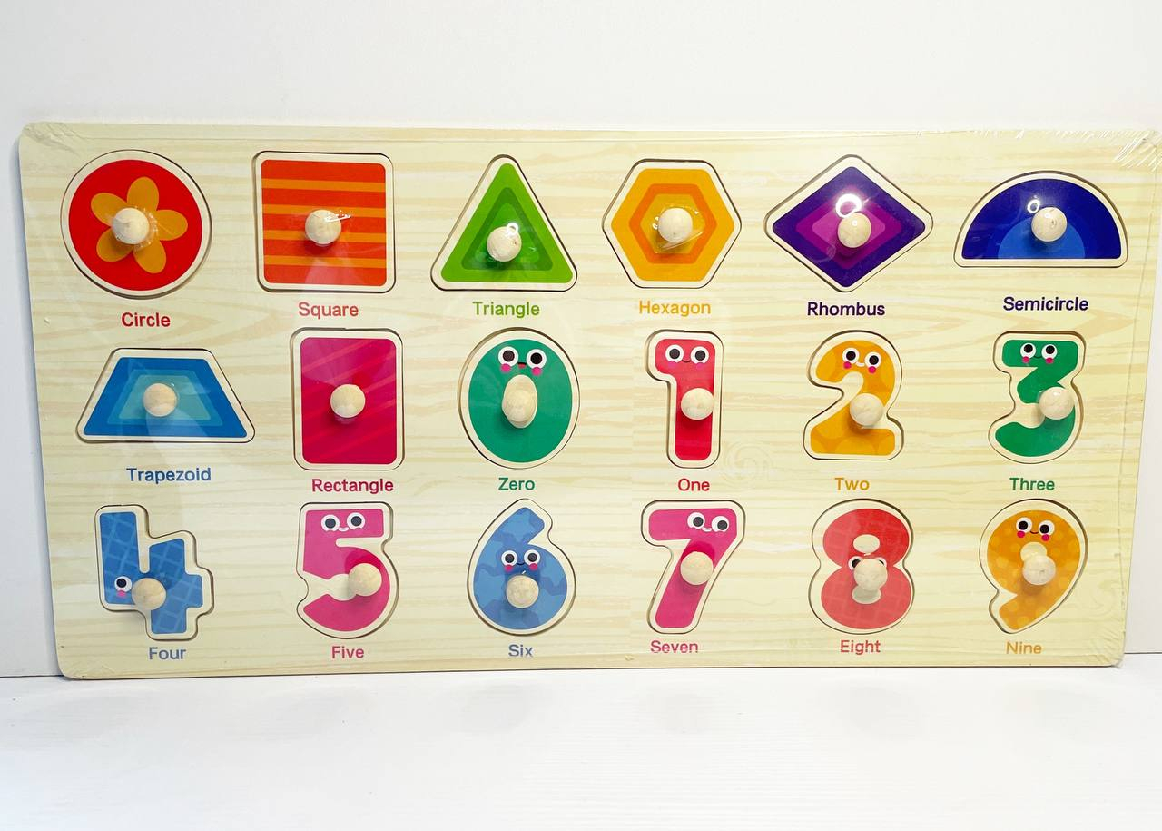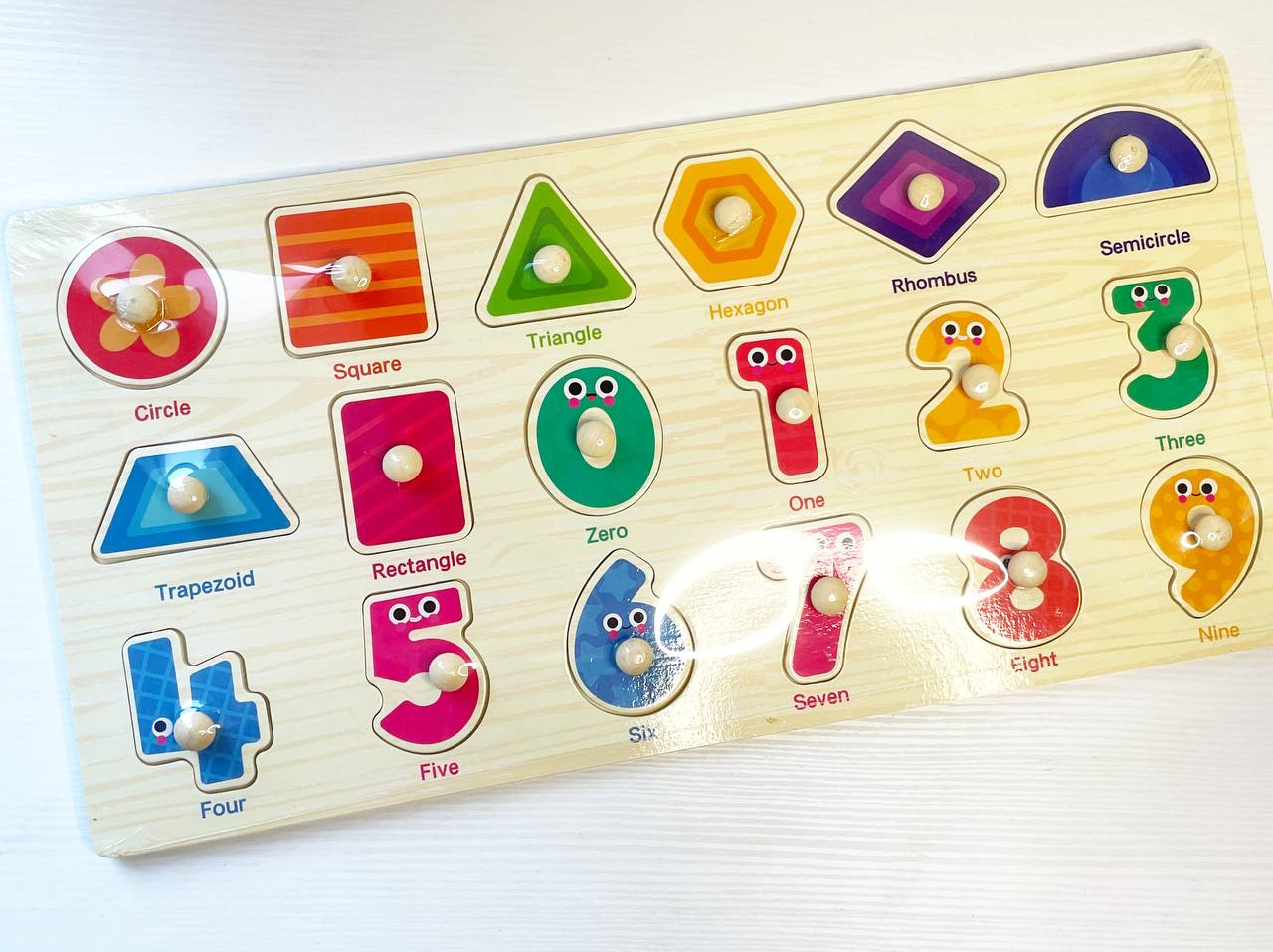 Деревянная рамка – вкладка большого формата с ручками Цифры и геометрические фигуры, C 75534