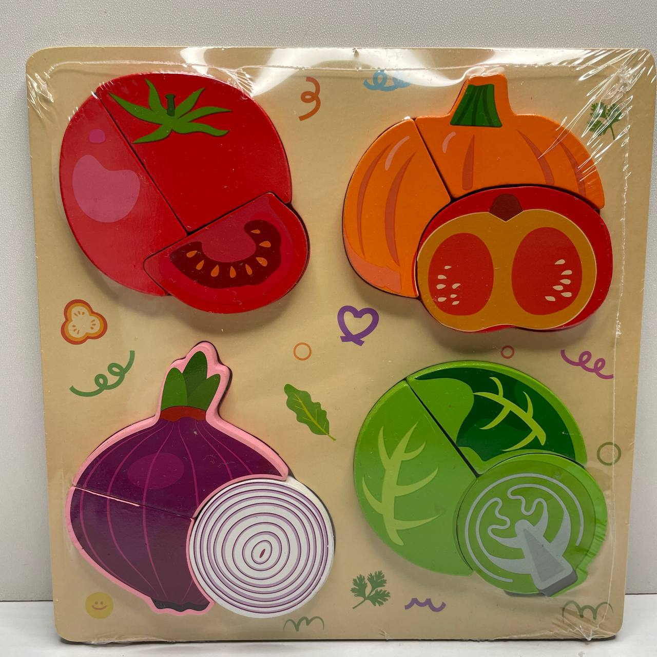 Деревянная рамка - вкладыш (пазл) Овощи с объемными фигурами, C 75637