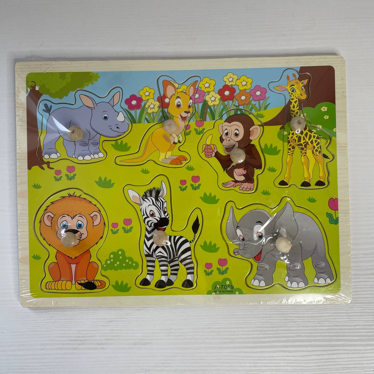 Деревянная рамка вкладыш с яркими рисунками познакомит вашего малыша с различными животными.