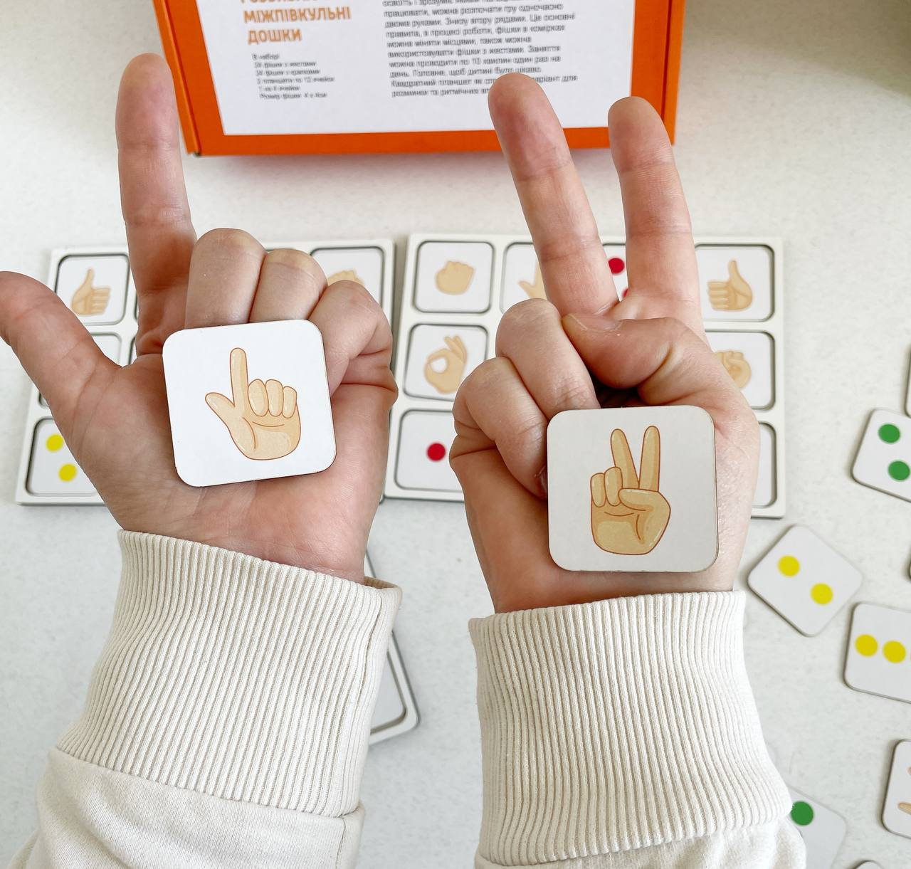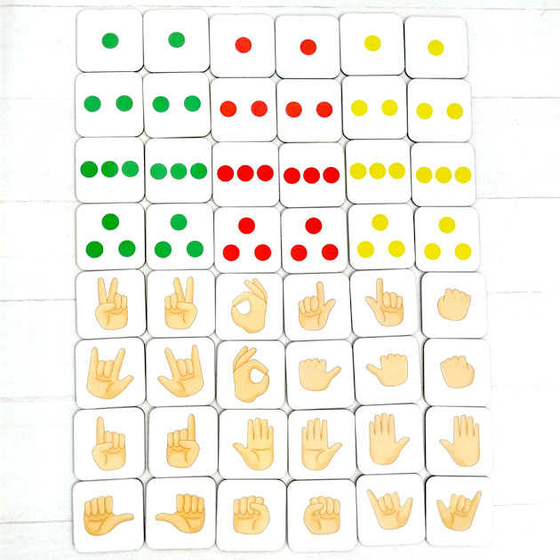 В наборе 24 фишки с жестами