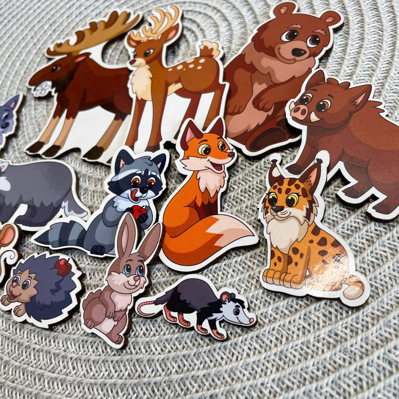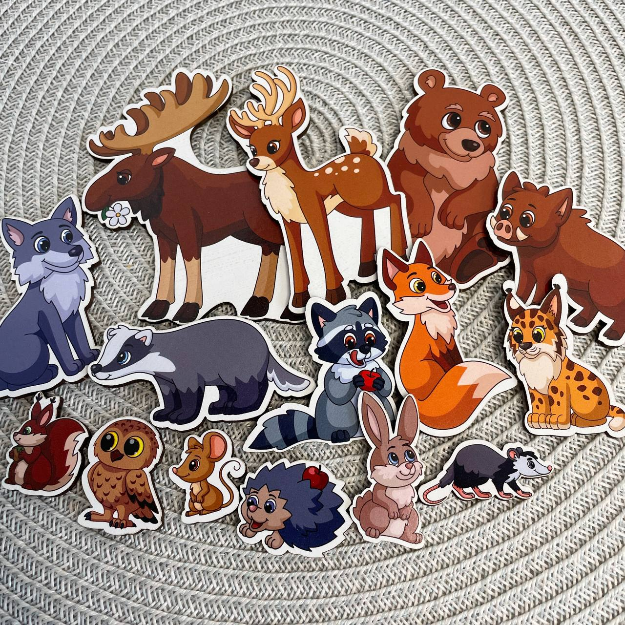 Высота лося 10см, высота лисы 6см, высота мышки 2,5см.