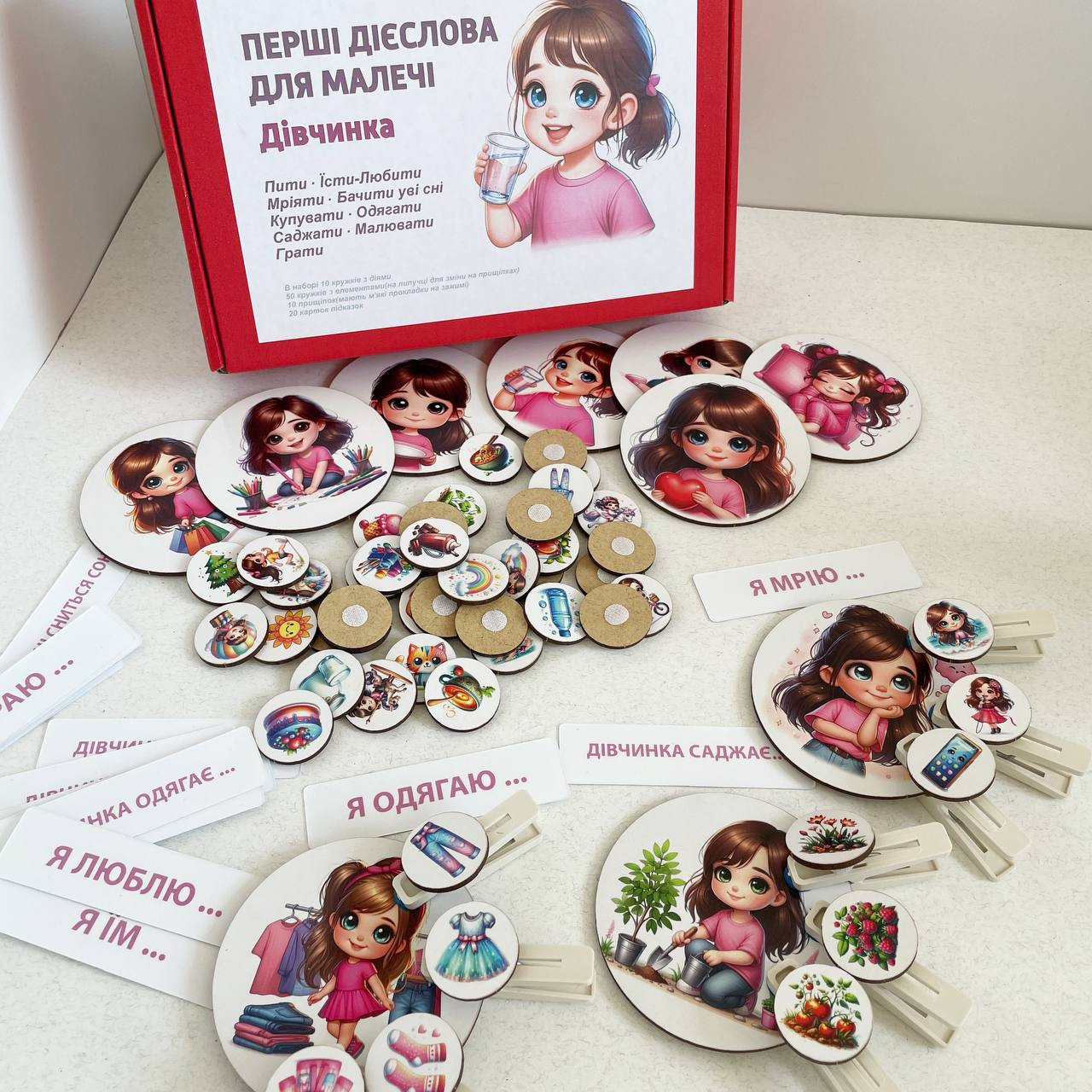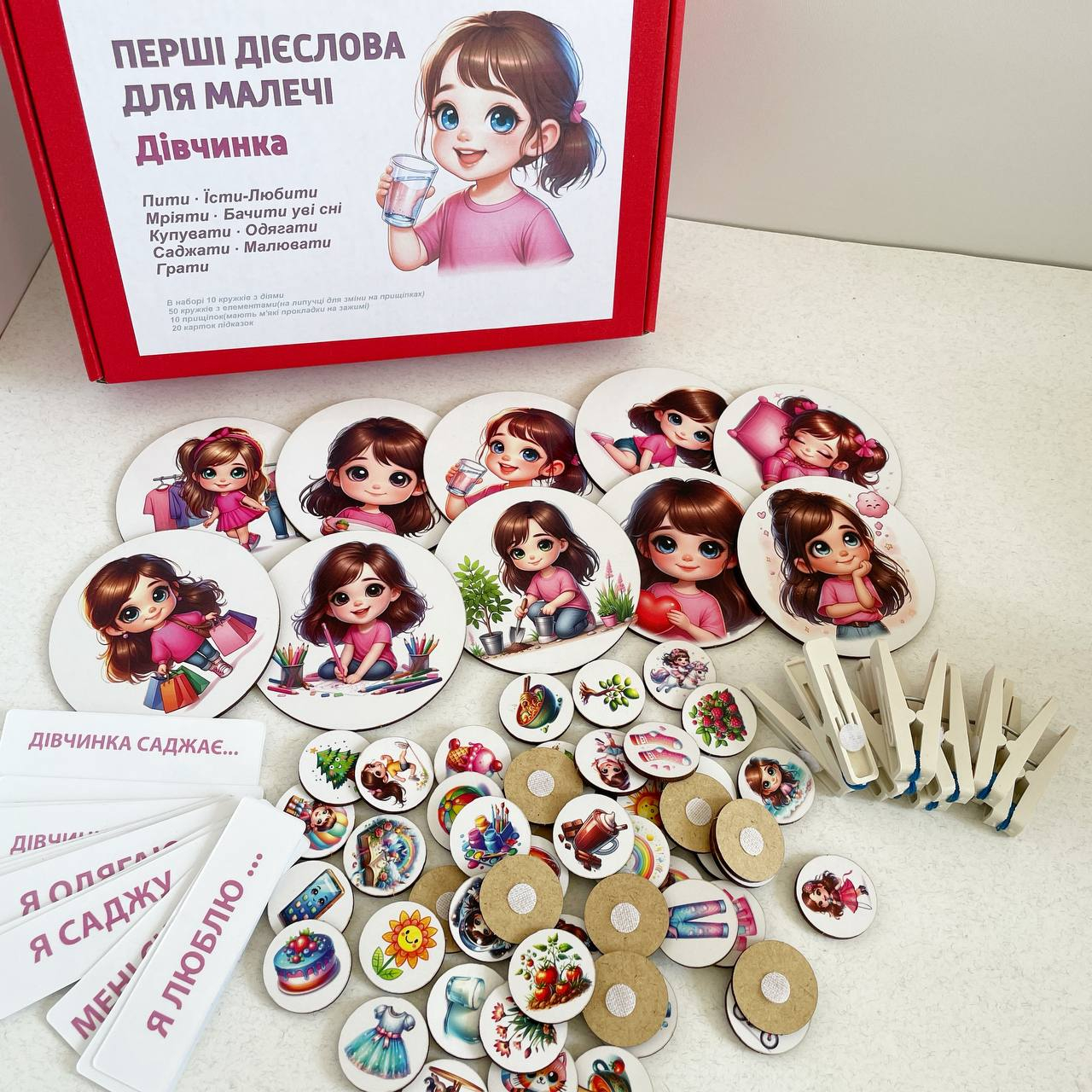 Обучающая деревянная игра Первые глаголы для малышей (Девочка) SP