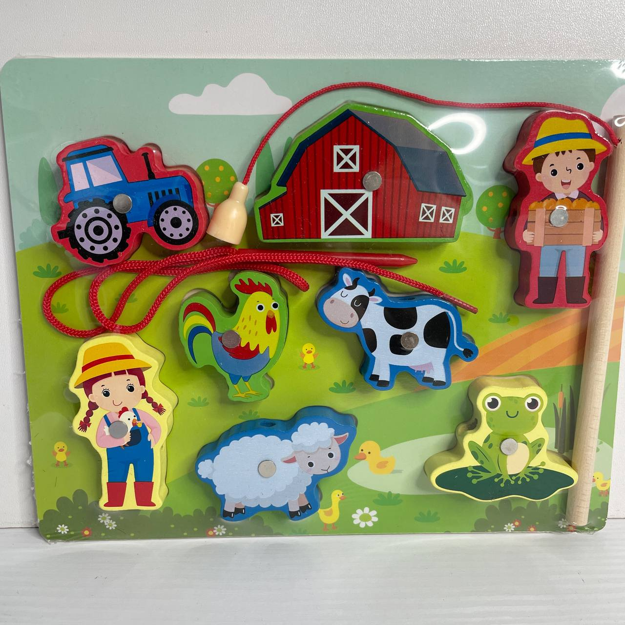 Деревянная рамка вкладыш, магнитная рыбалка, шнуровка Ферма
